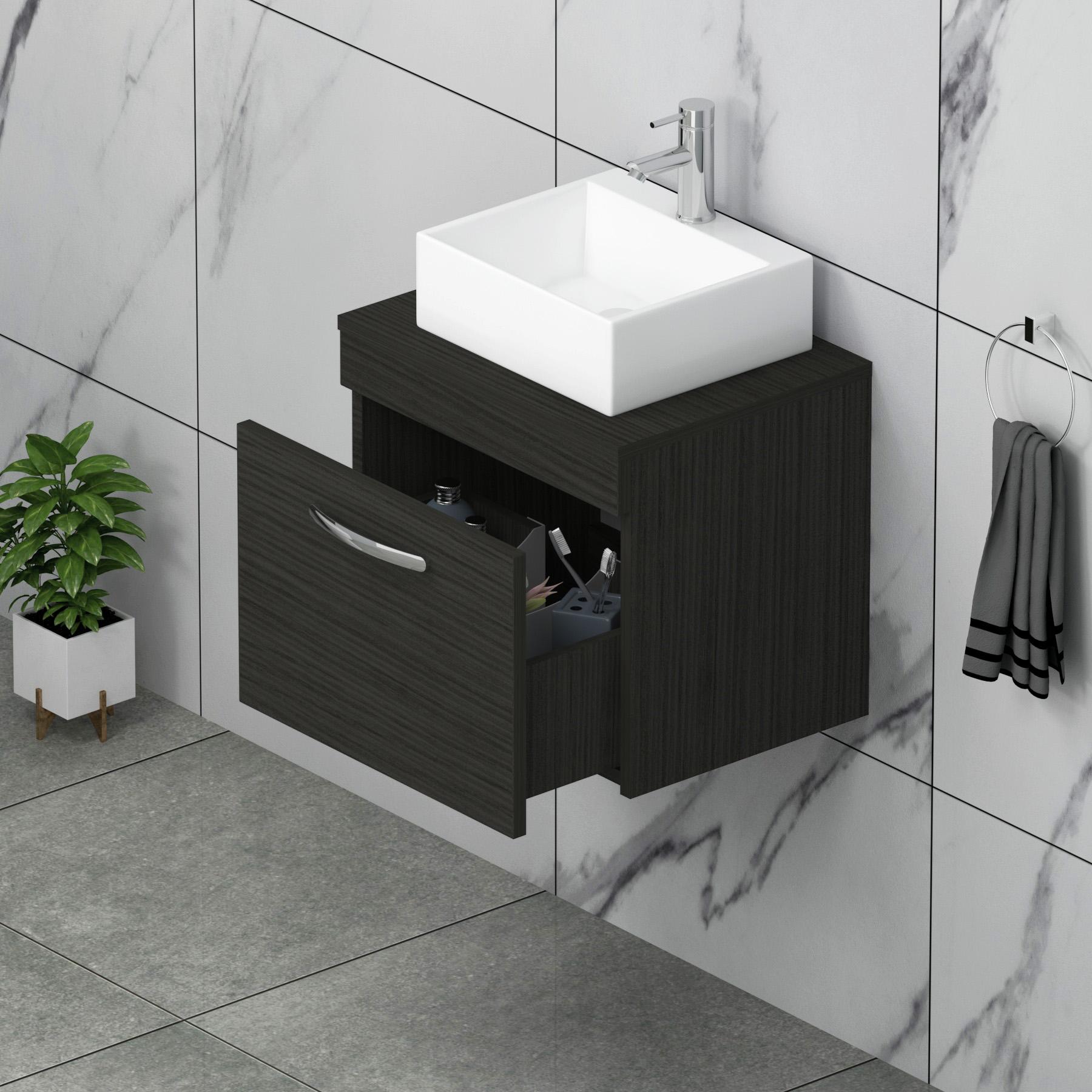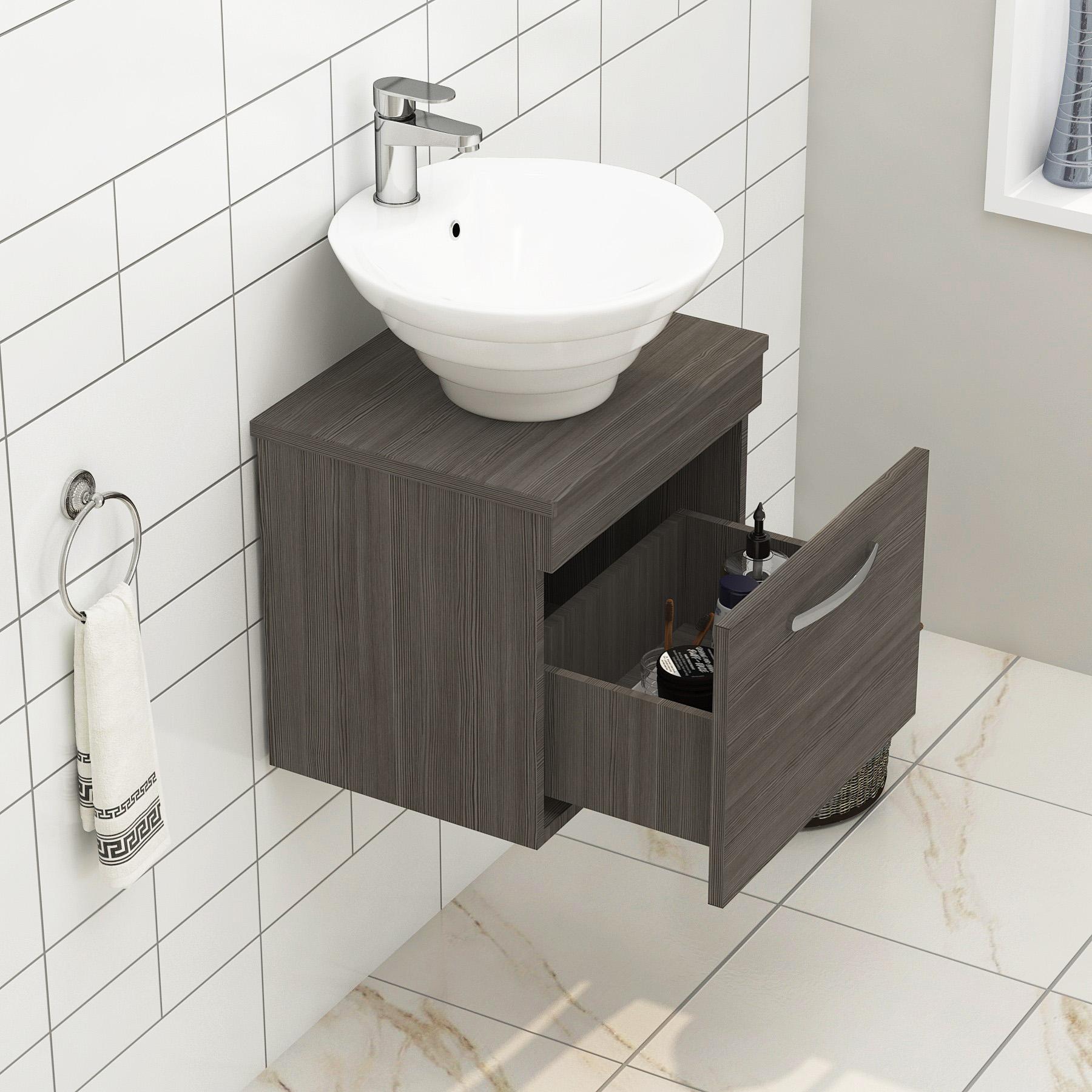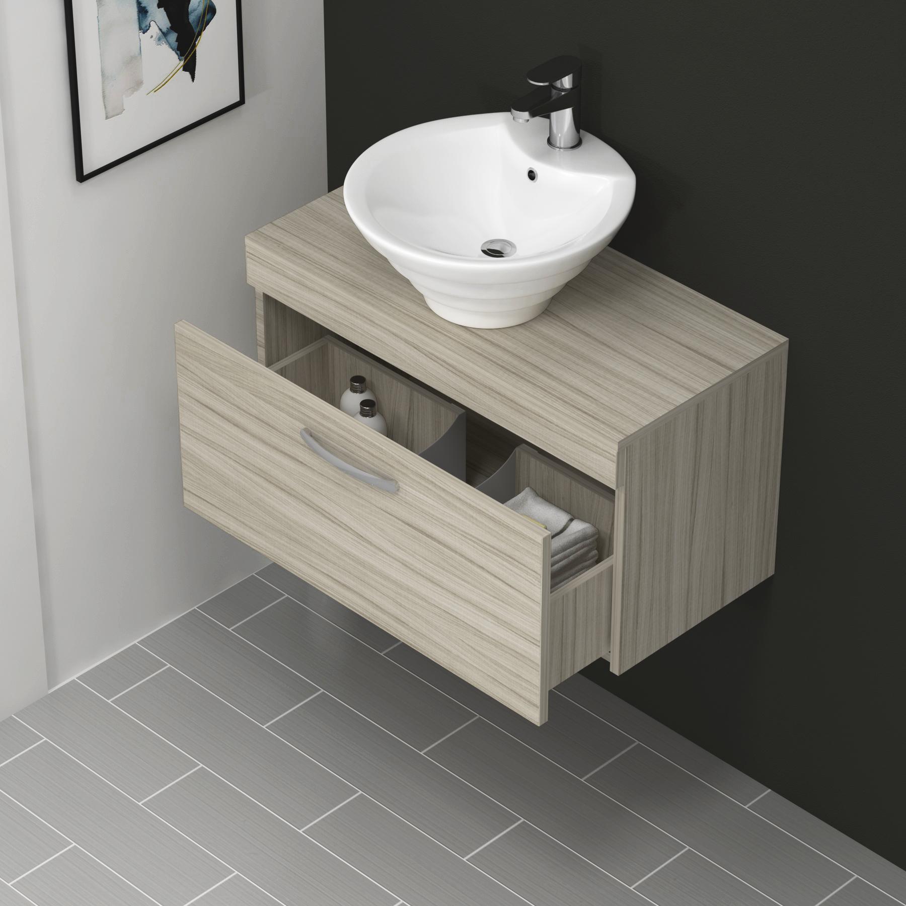 Turin 600mm Grey Elm 1 Drawer Wall Hung Count...