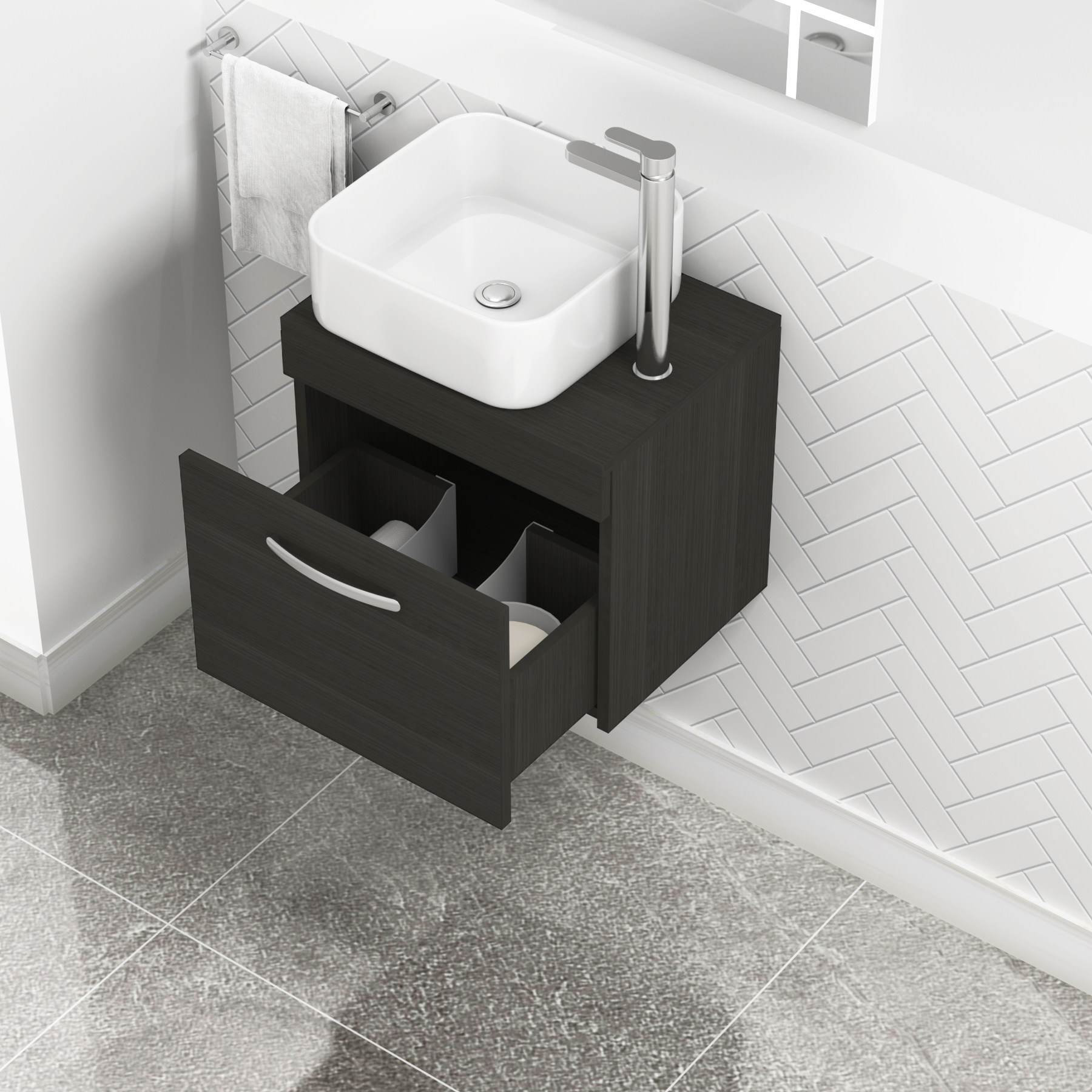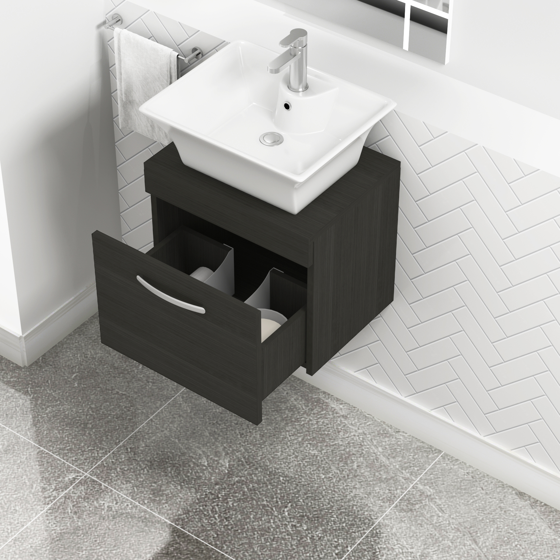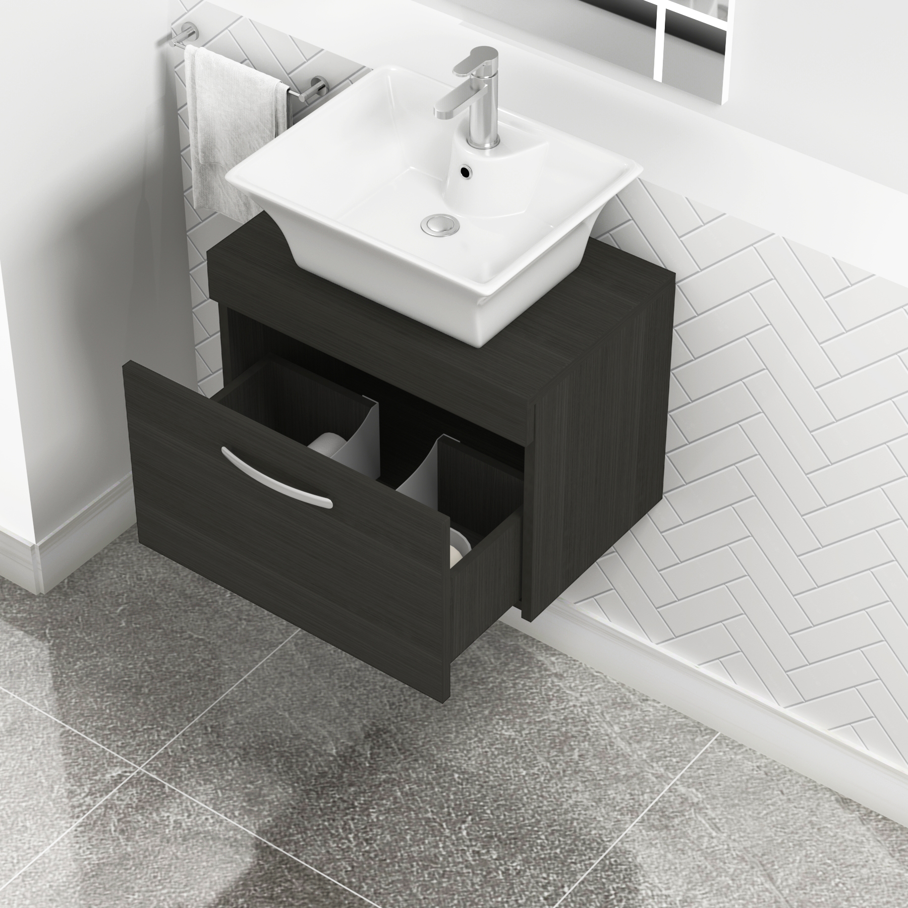 Turin 600mm Grey Elm 1 Drawer Wall Hung Count...