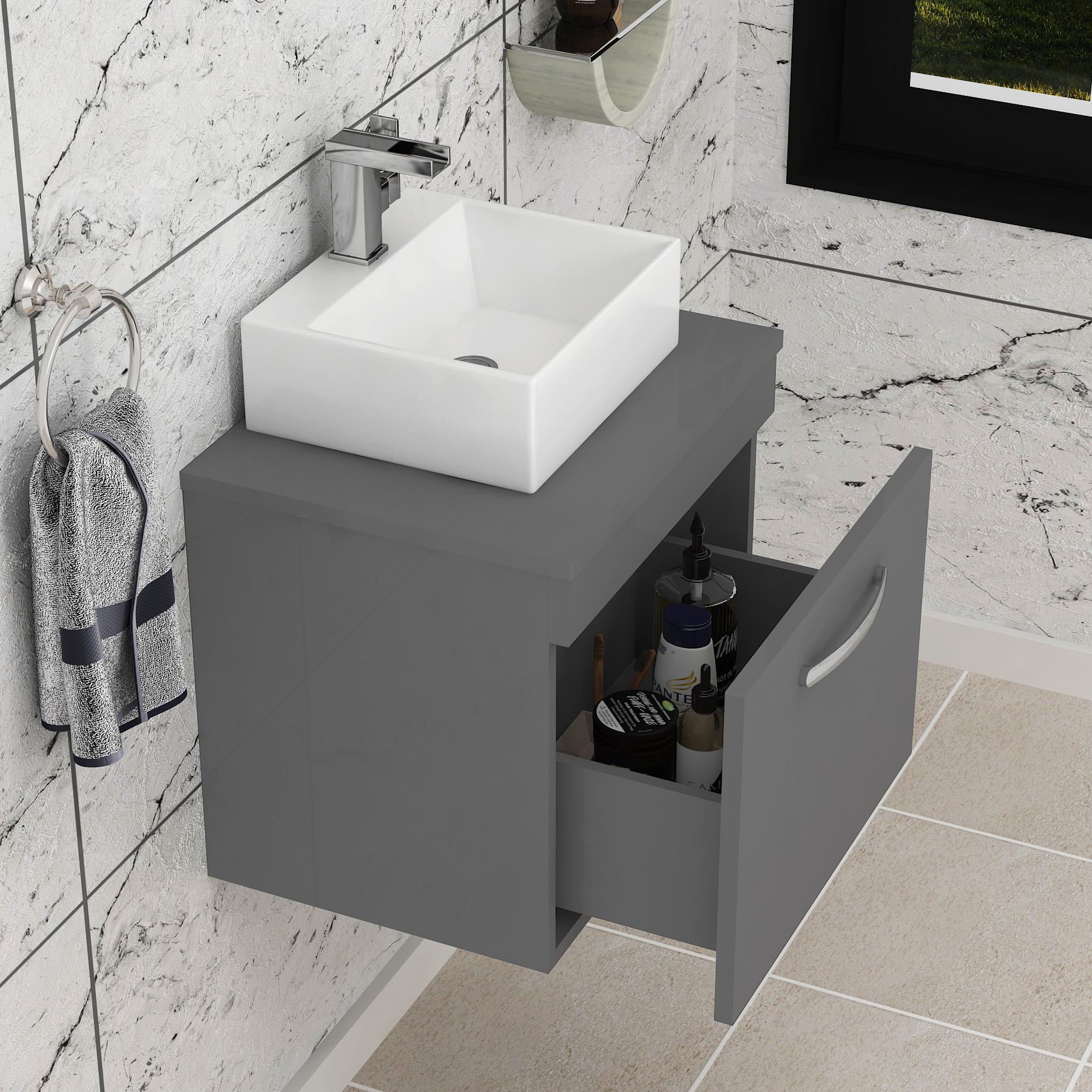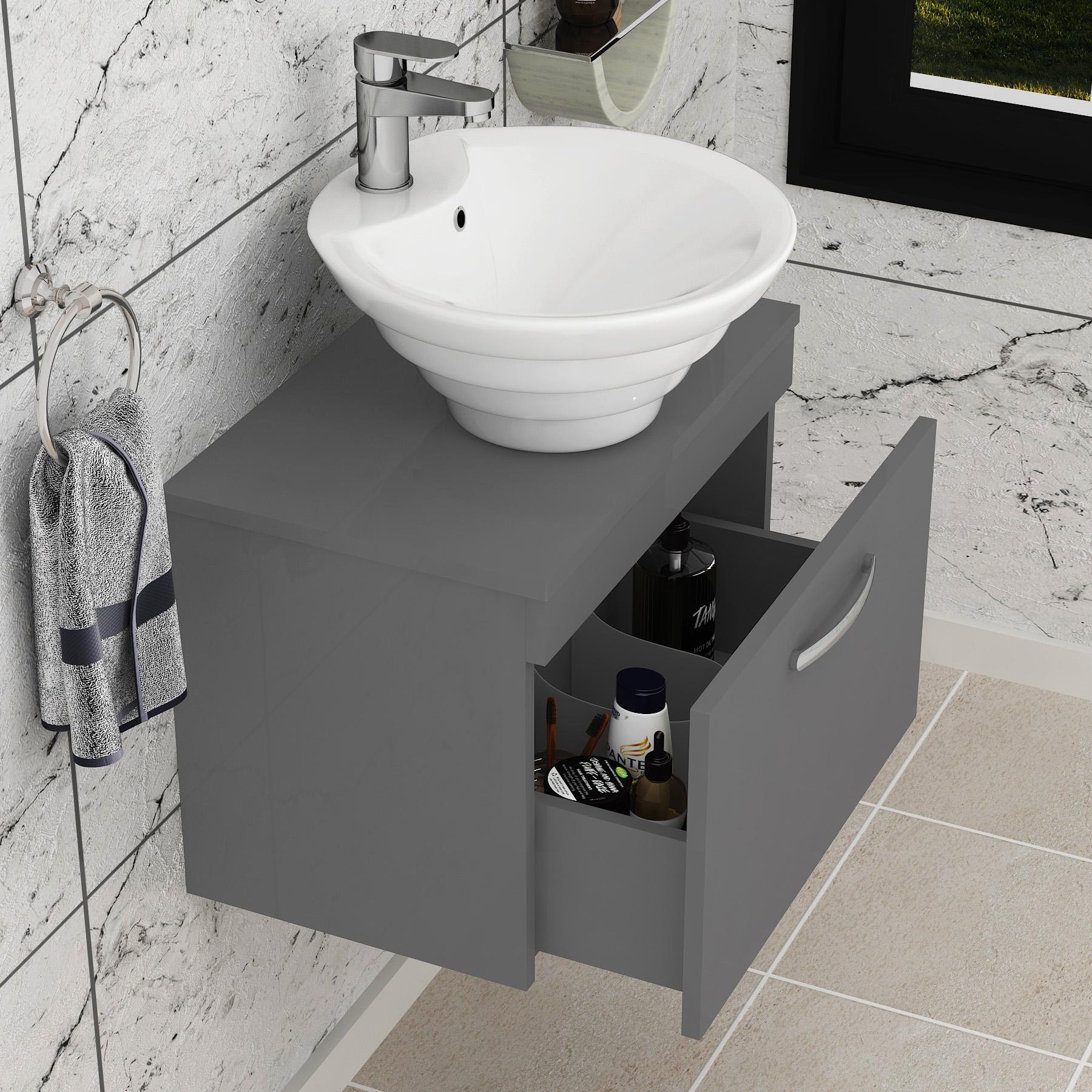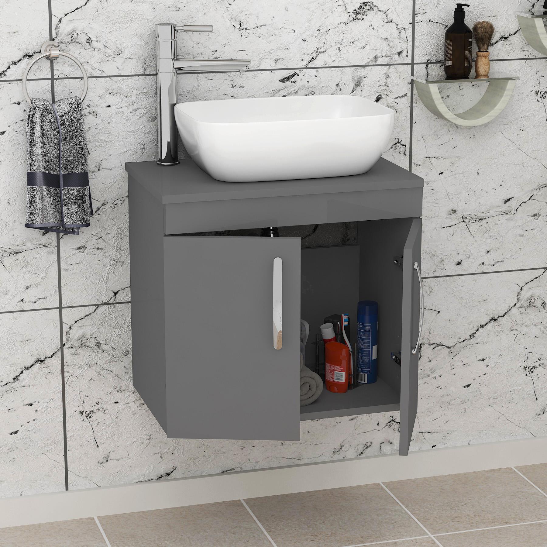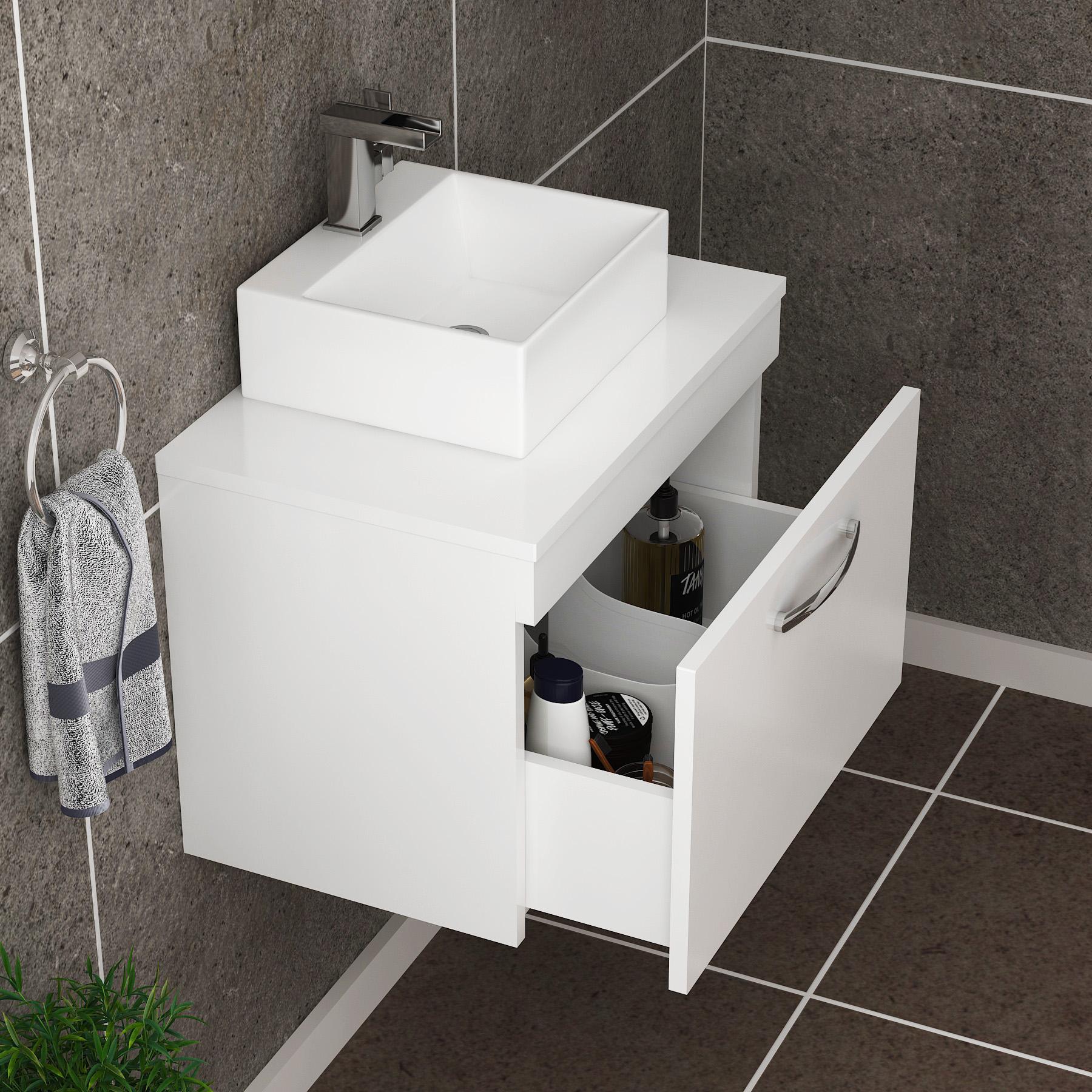 Turin 800mm Gloss White Wall Hung Worktop Van...
