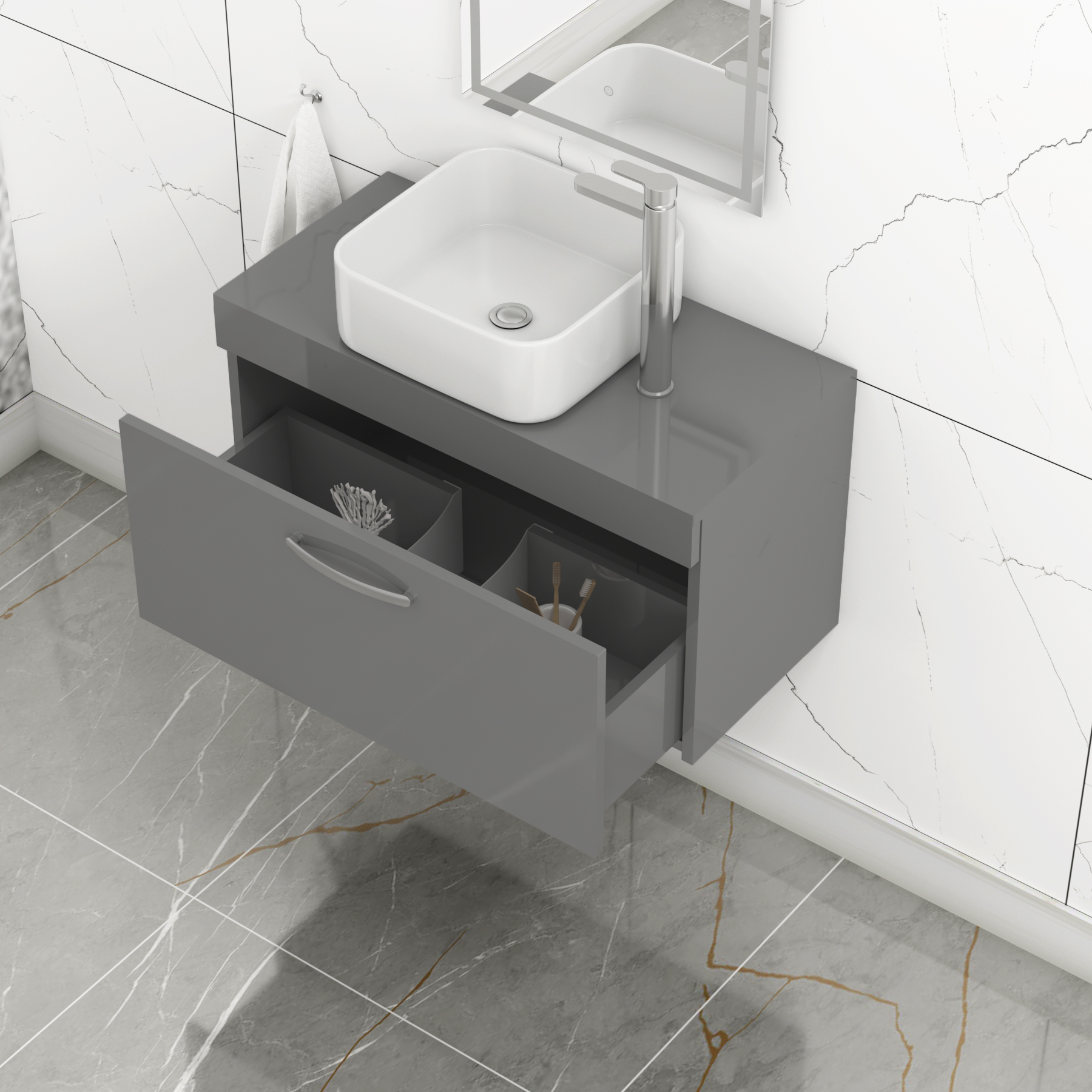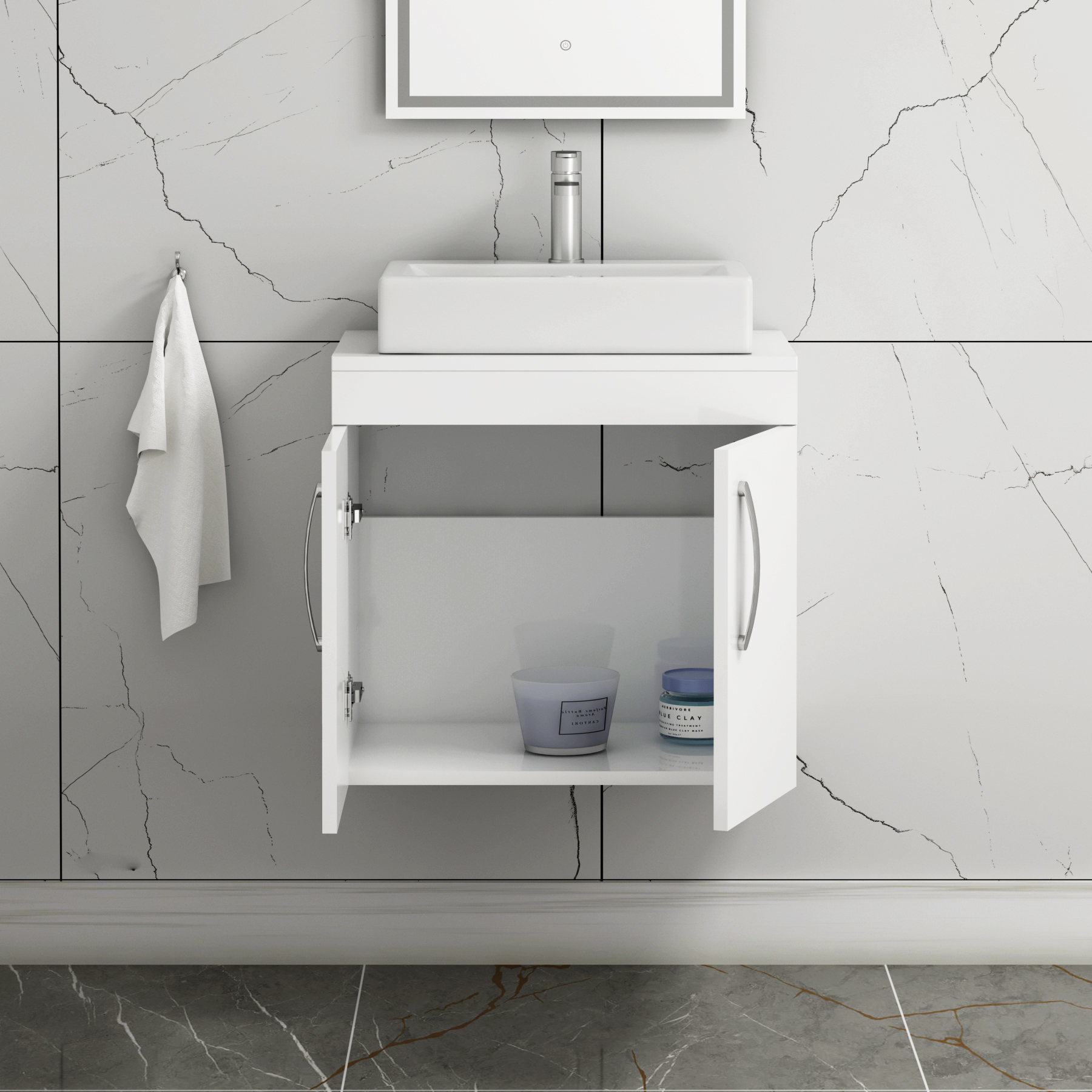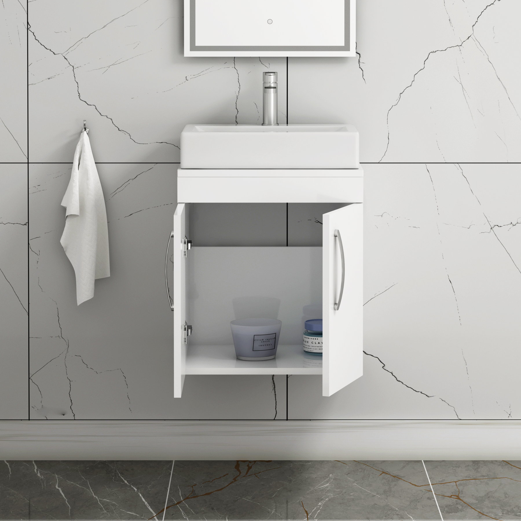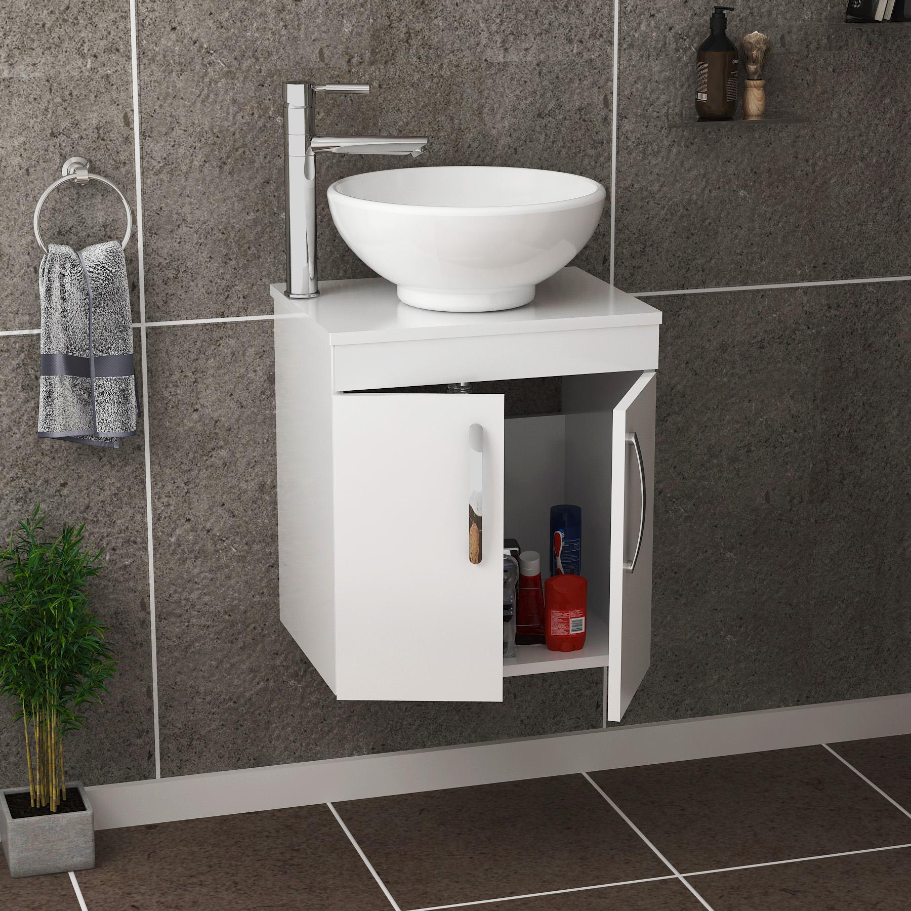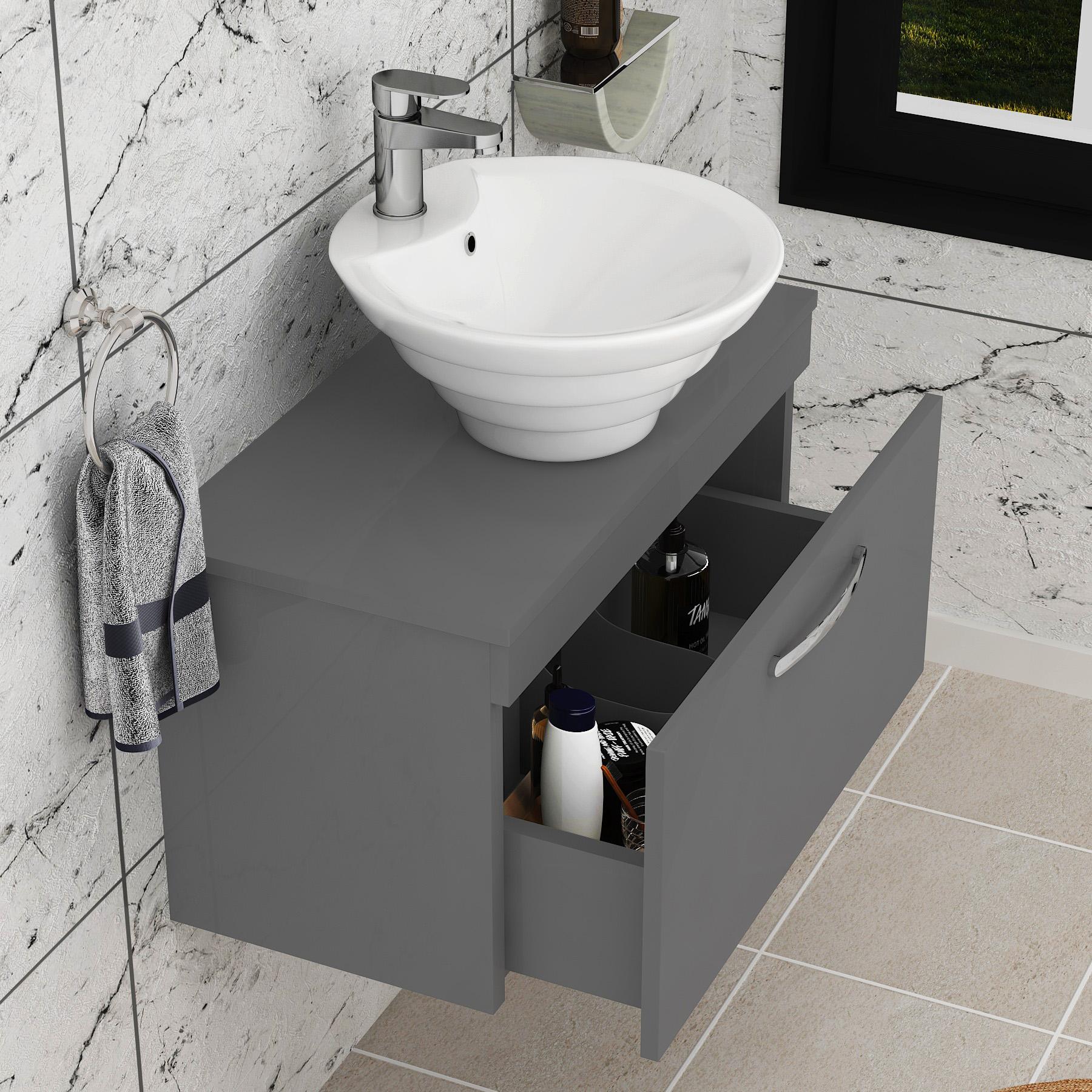 Turin 800mm Gloss White Wall Hung Worktop Van...