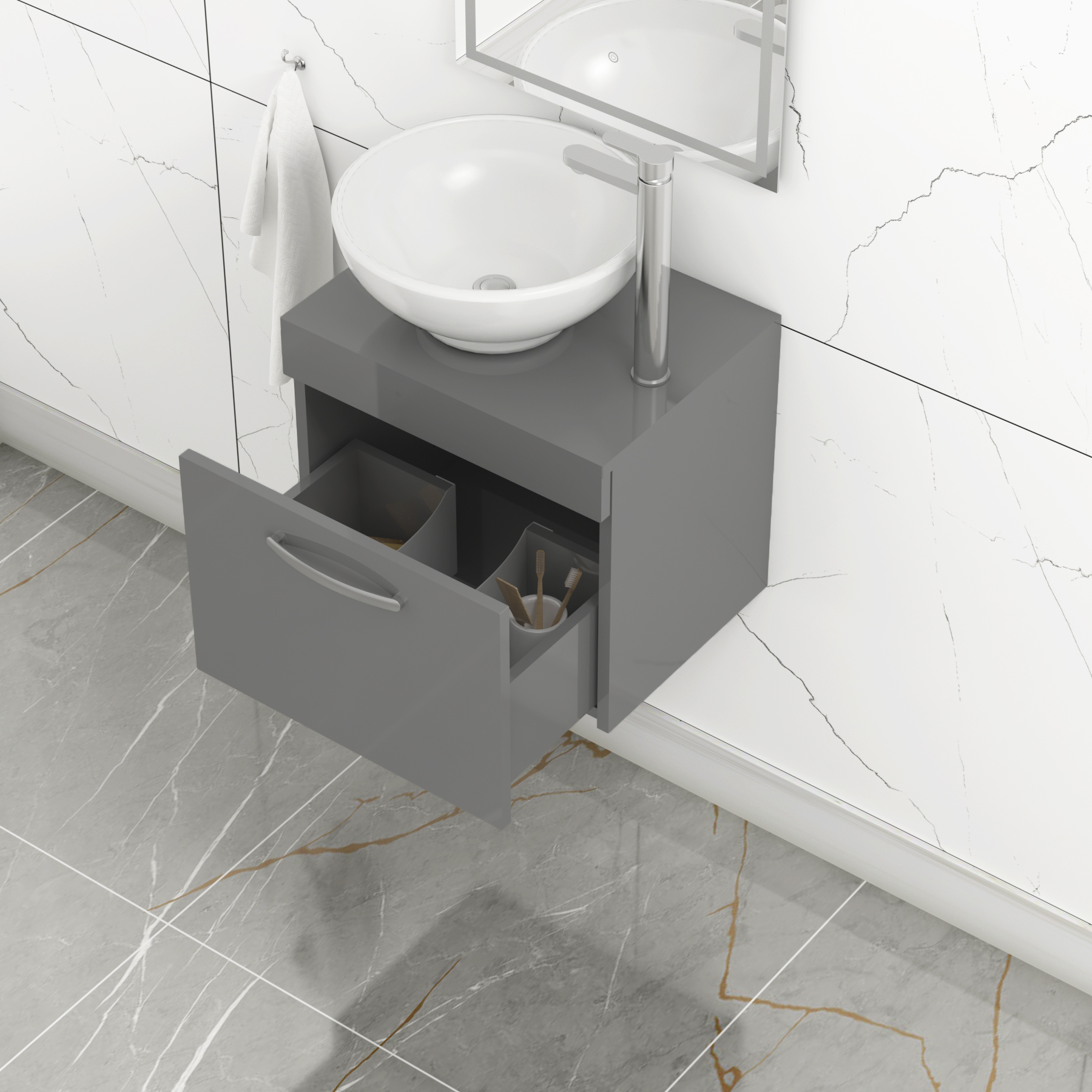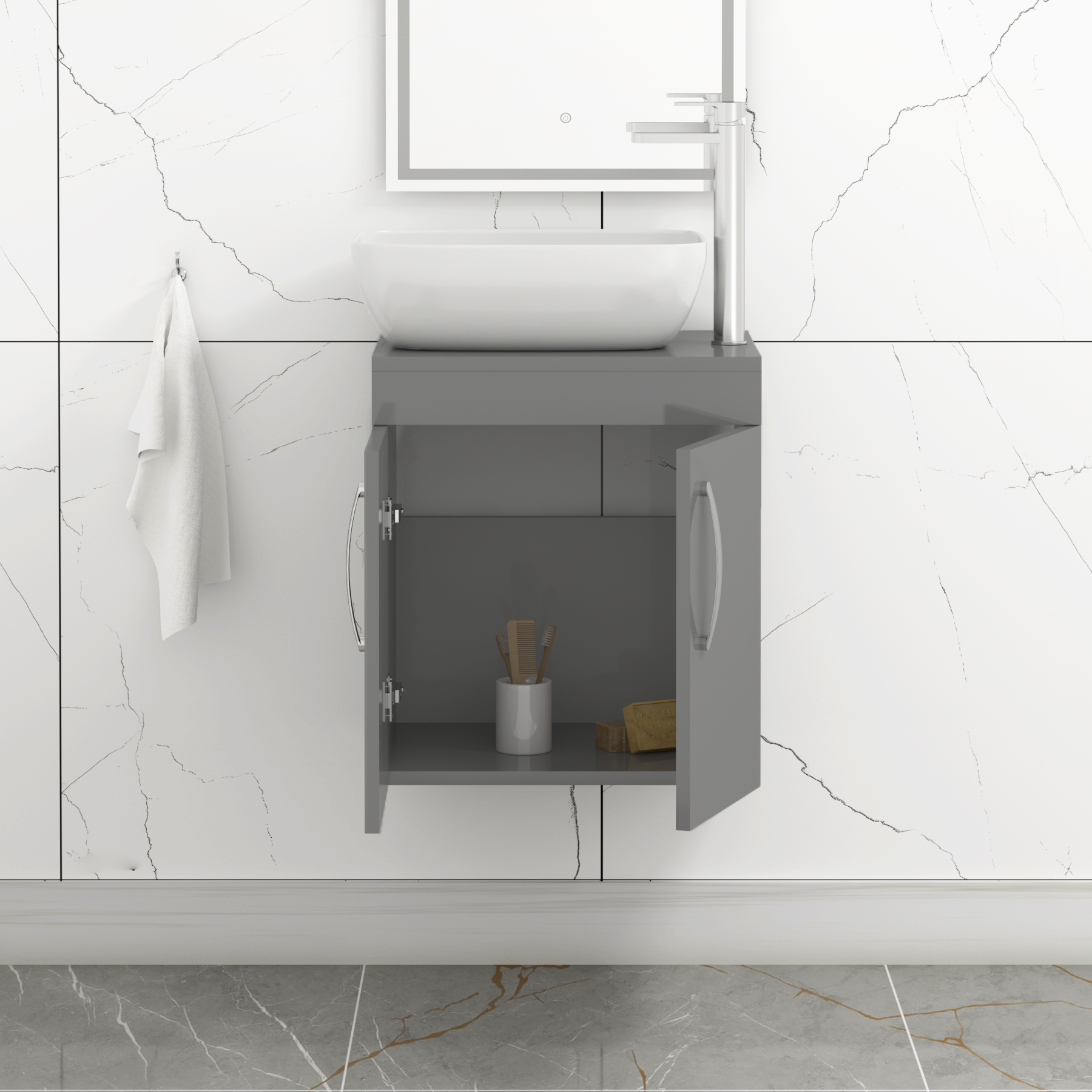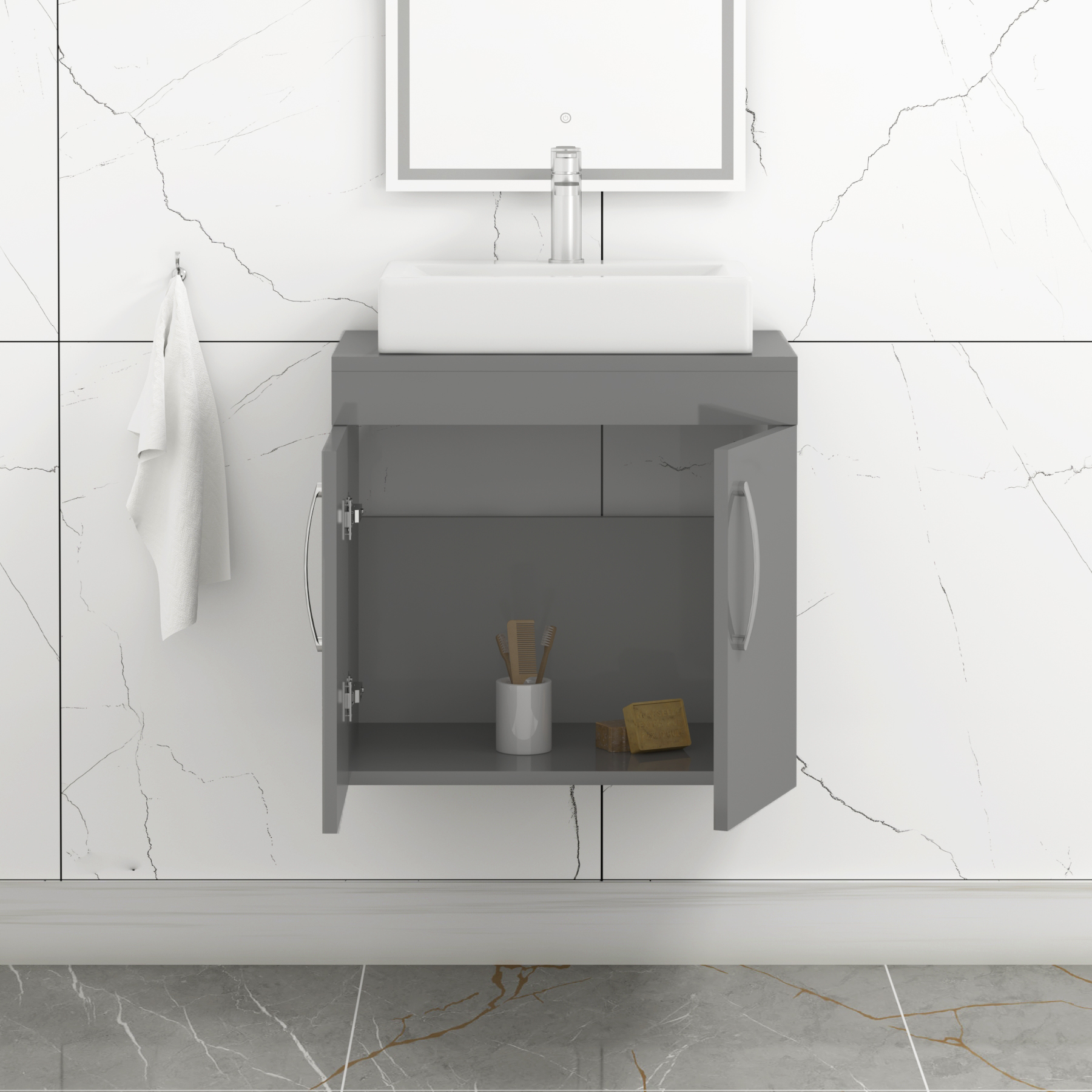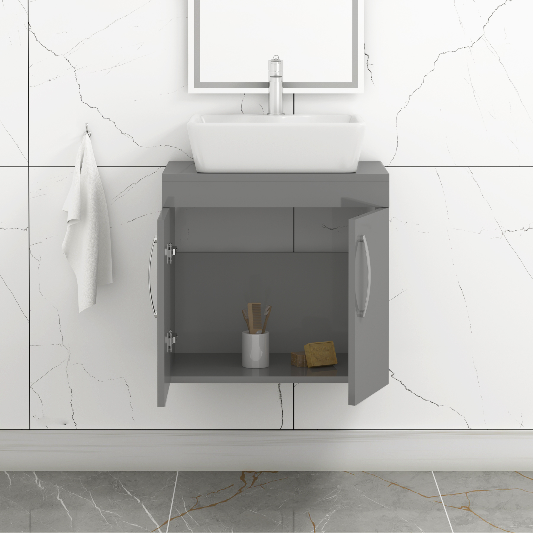 Turin 800mm Gloss White Wall Hung Worktop Van...