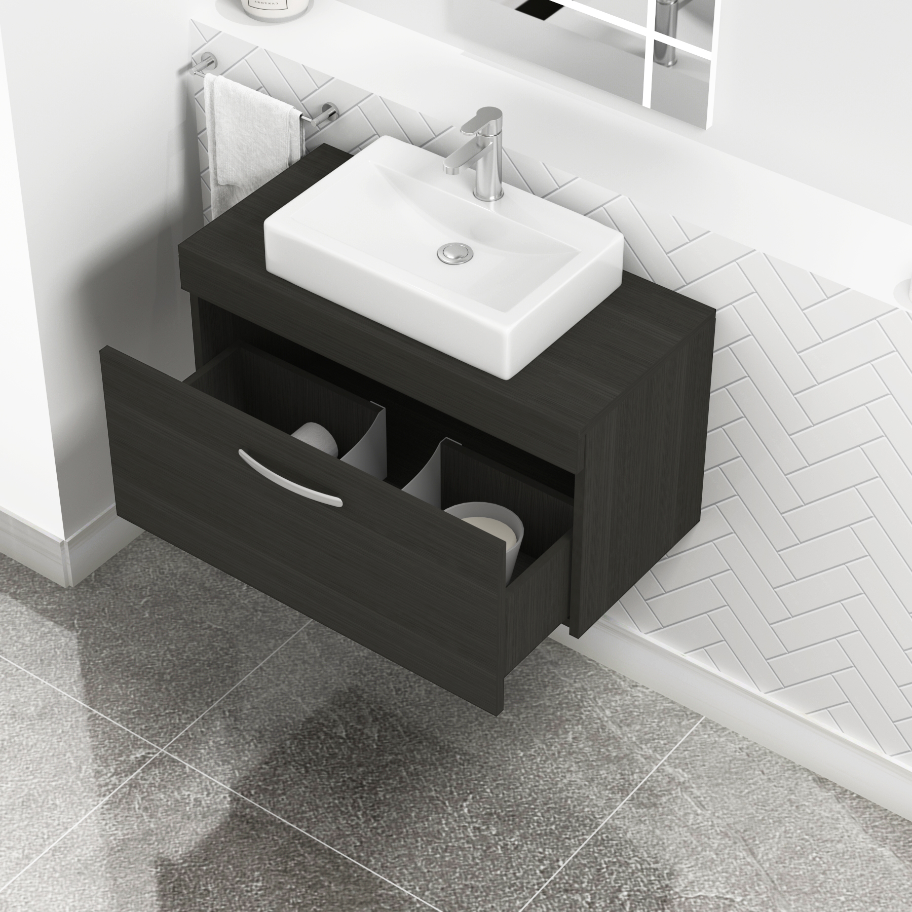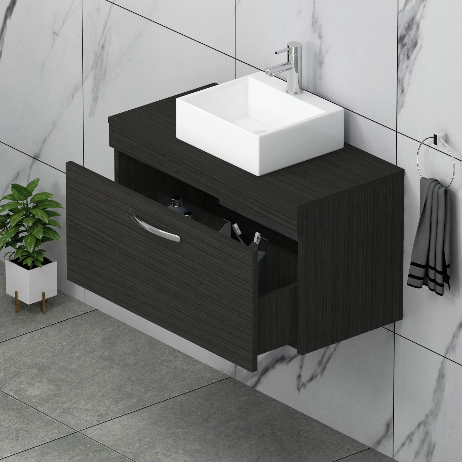 Turin 800mm Hale Black 1-Drawer Wall Hung Uni...