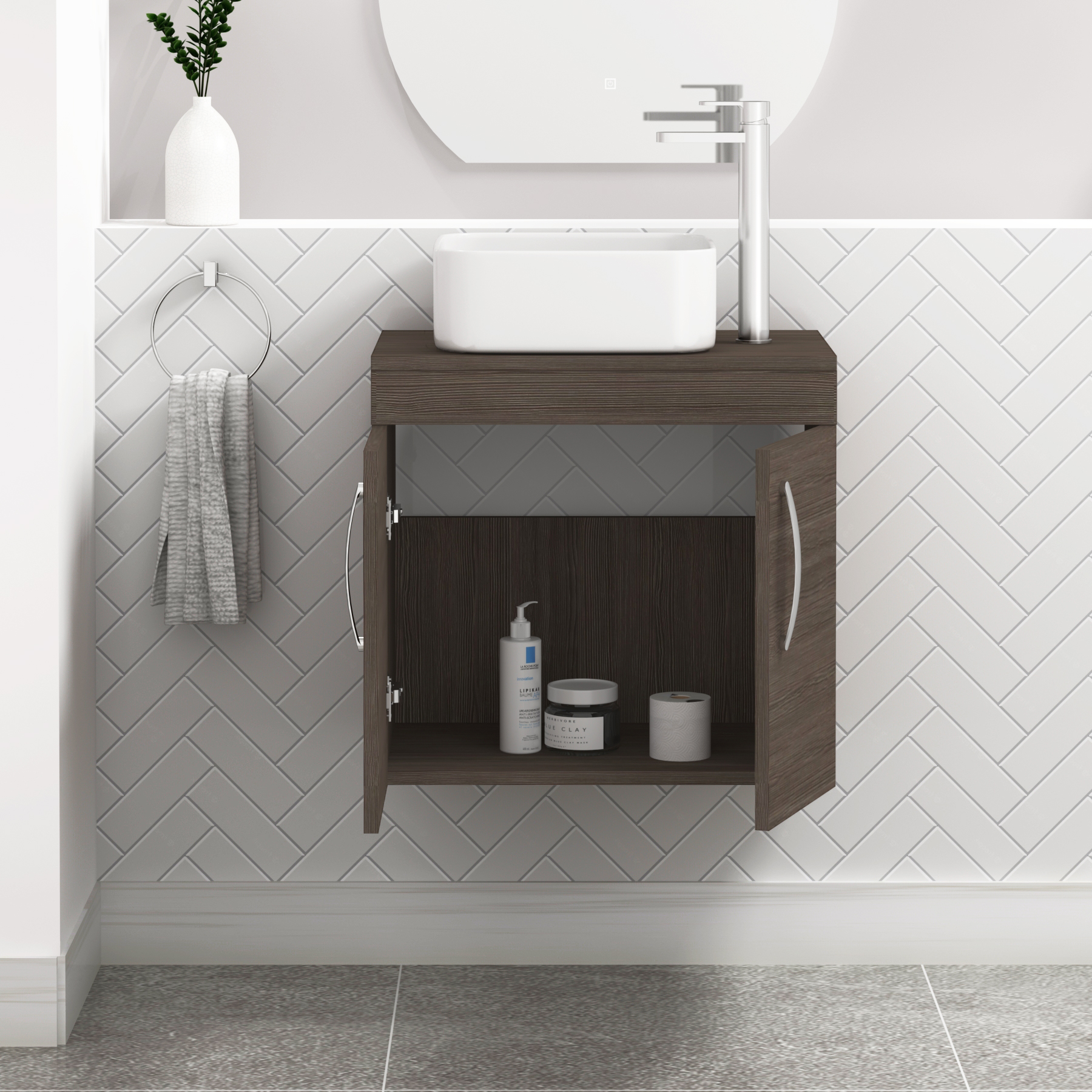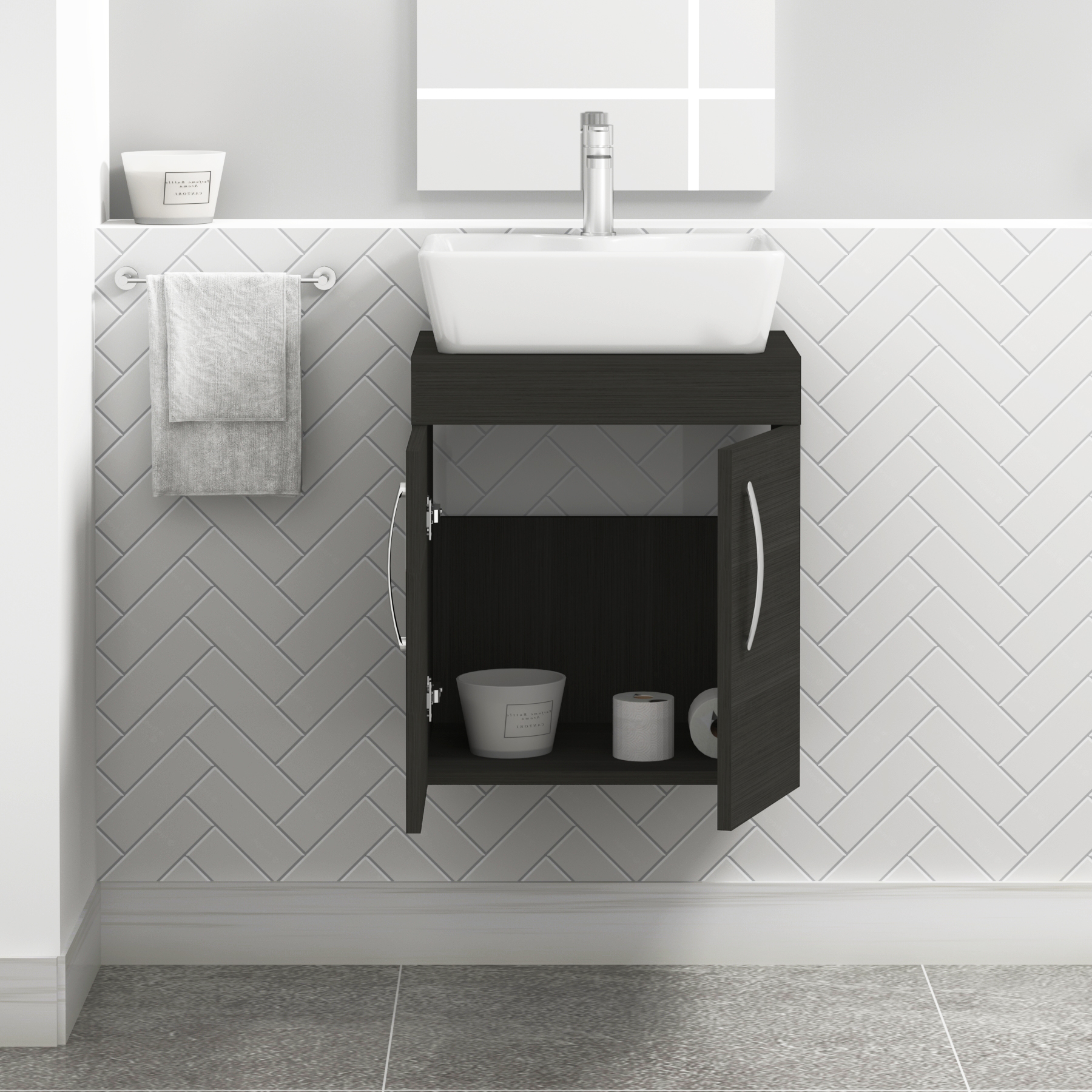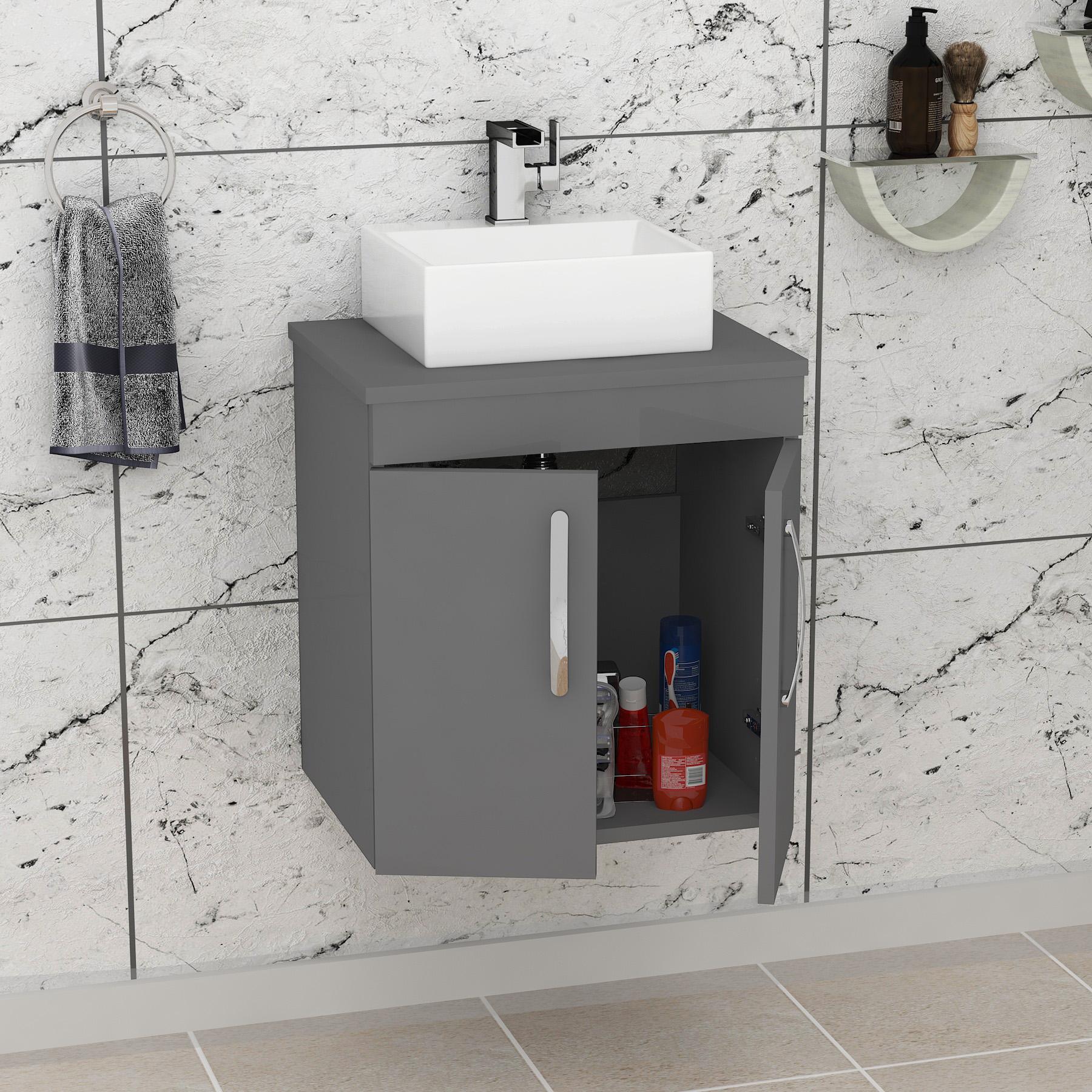 Turin 500mm Wall Hung Vanity Unit 2 Door Grey...
