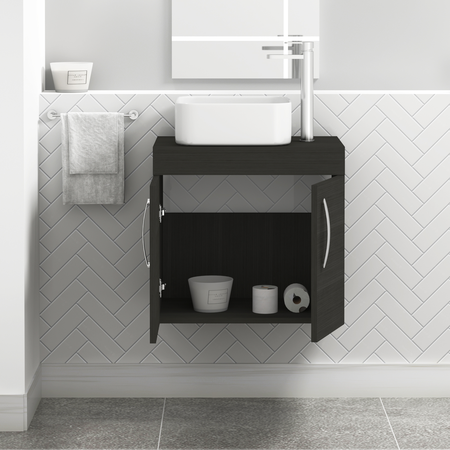 Turin 600mm Wall Hung Vanity Unit 2 Door Grey...