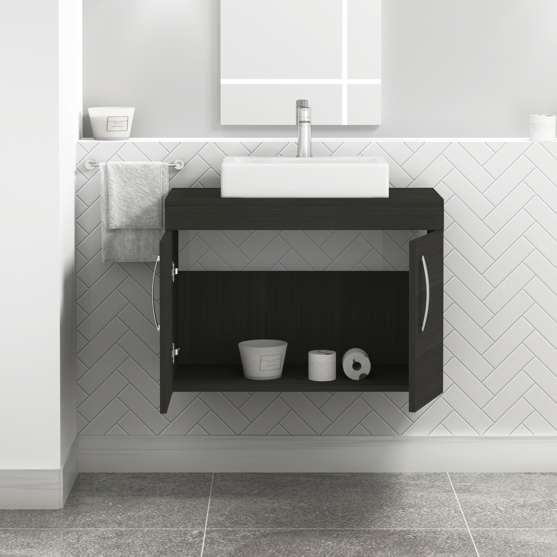 Turin 800mm Wall Hung Vanity Unit 2 Door Grey...
