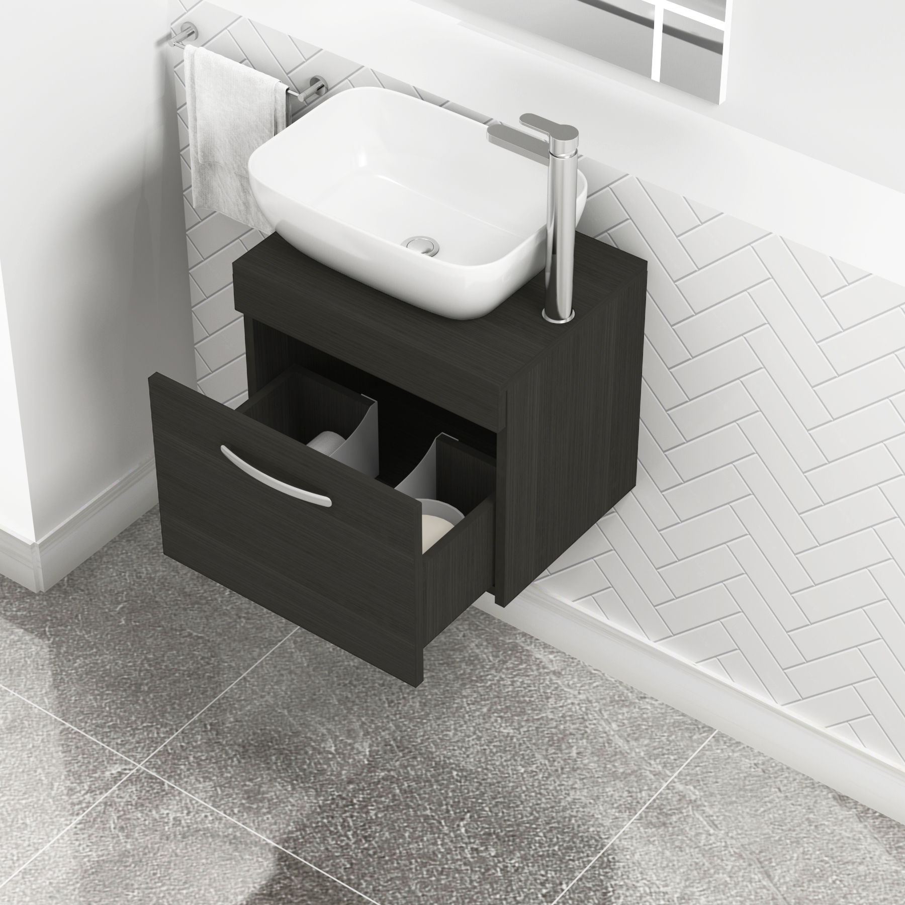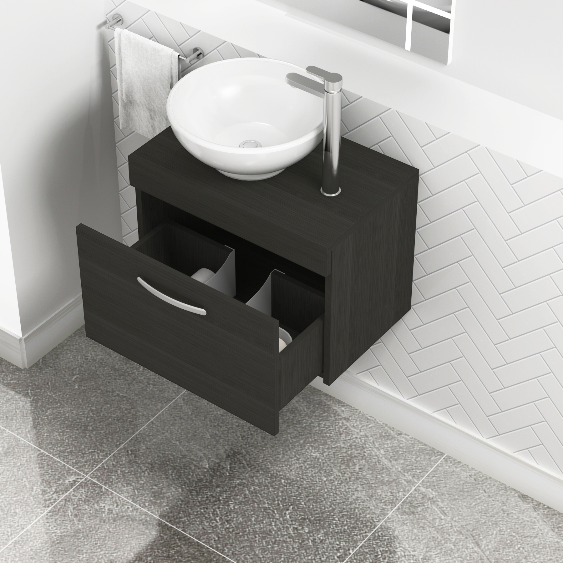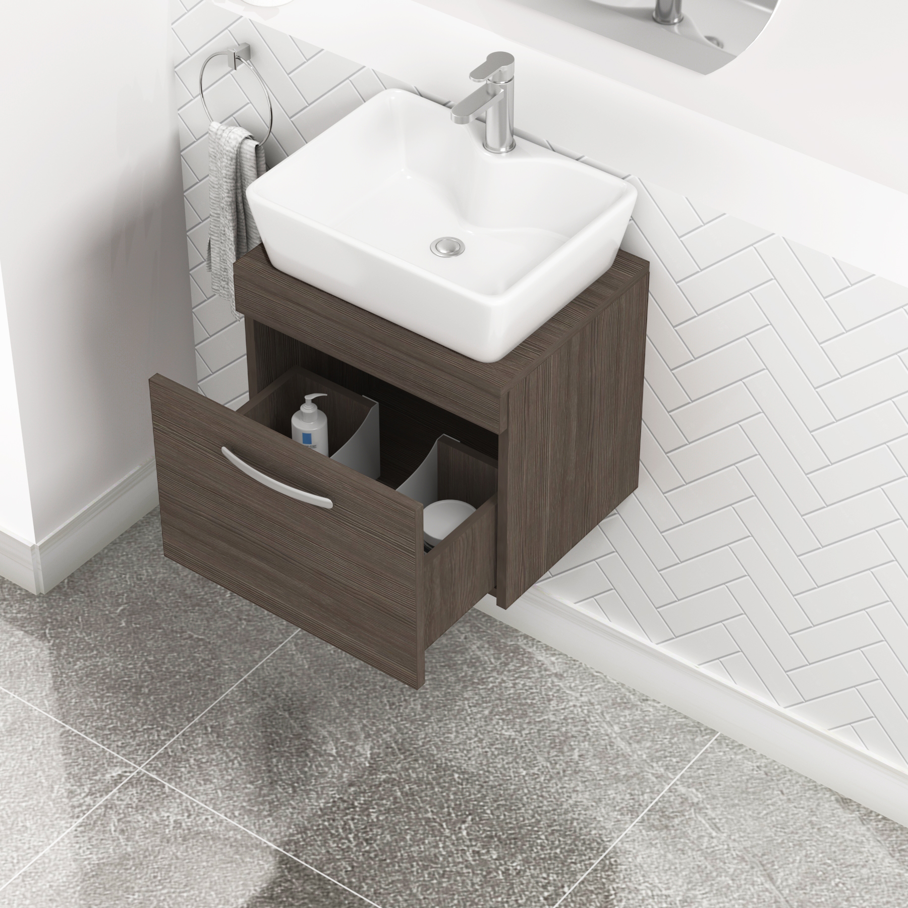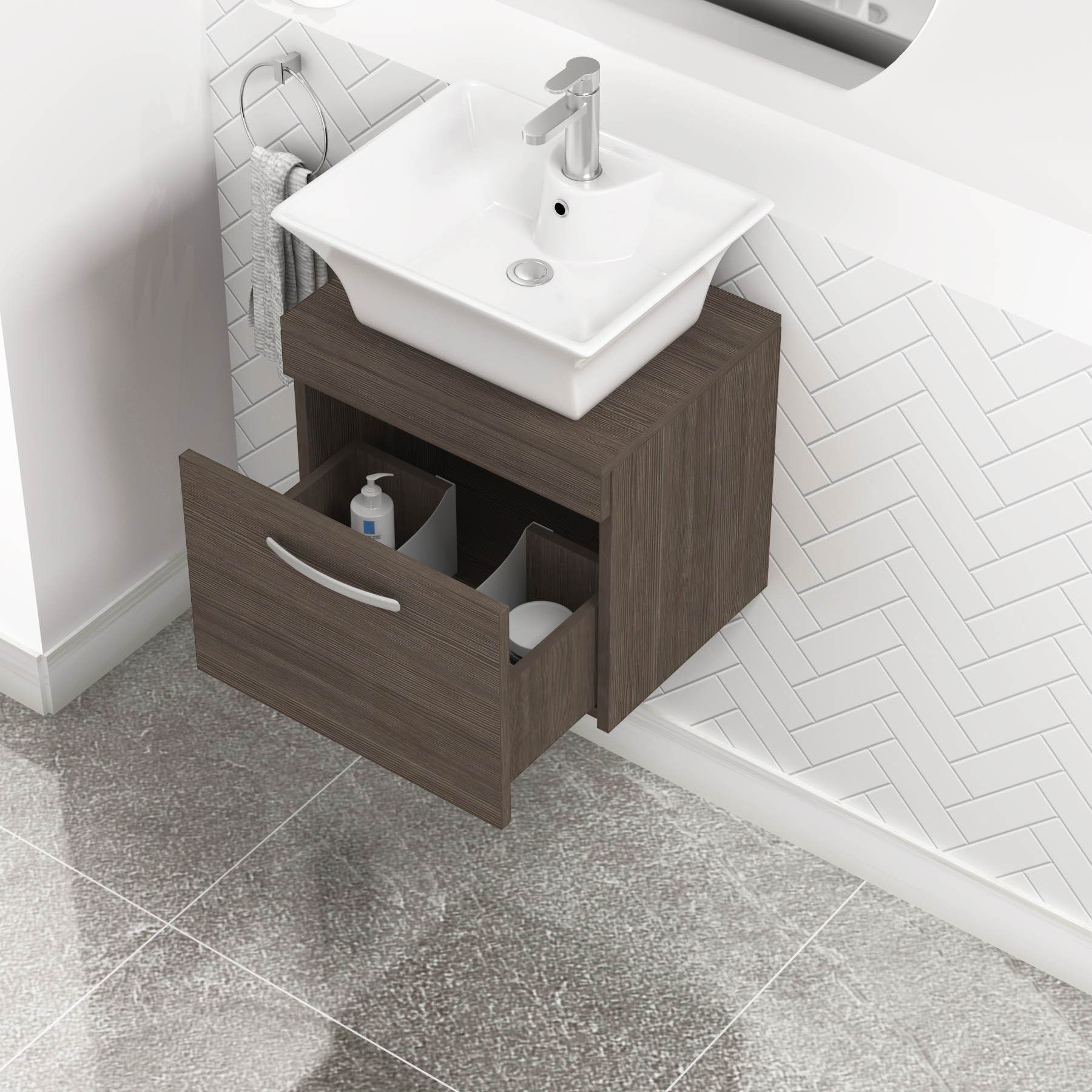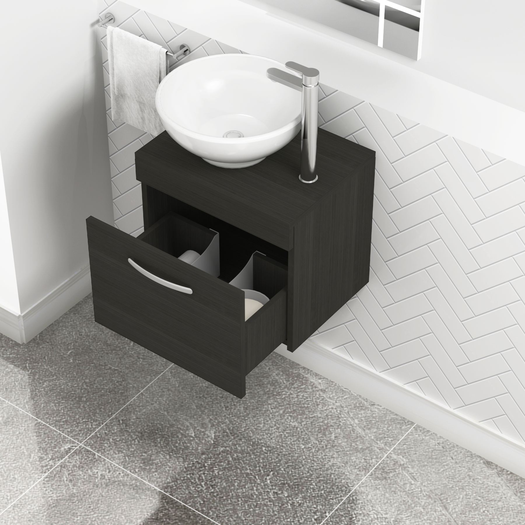 Turin 500mm Grey Elm 1 Drawer Wall Hung Count...