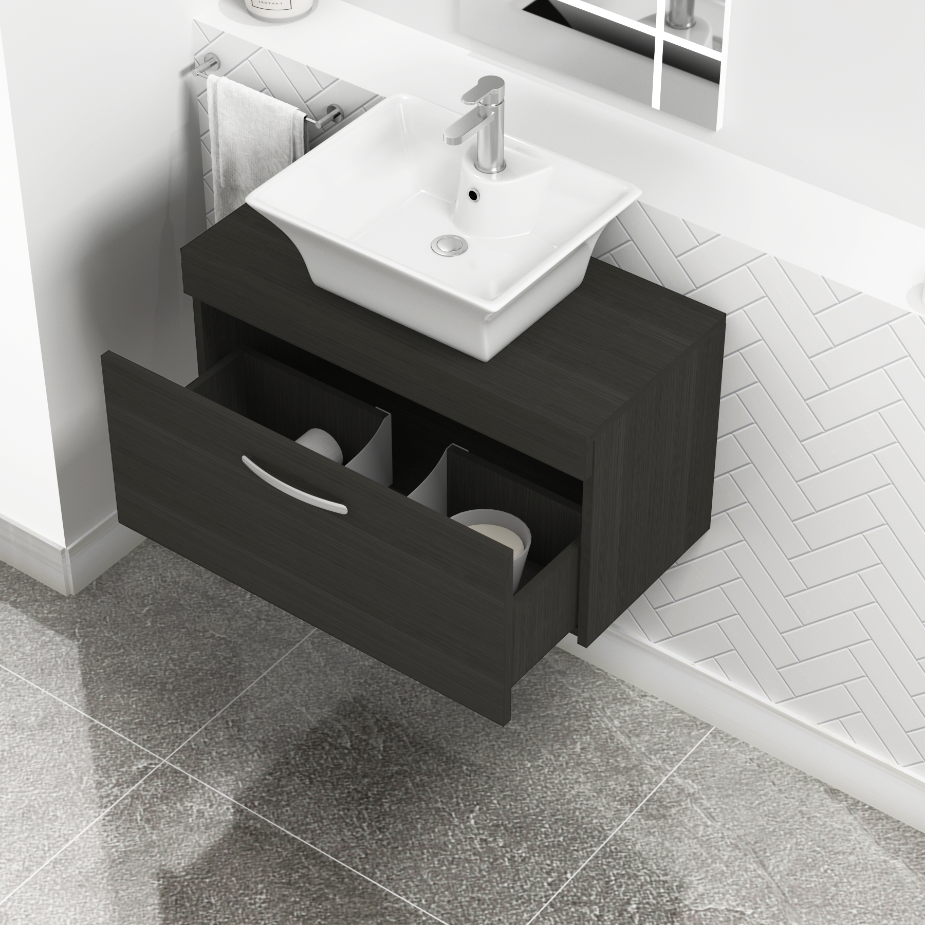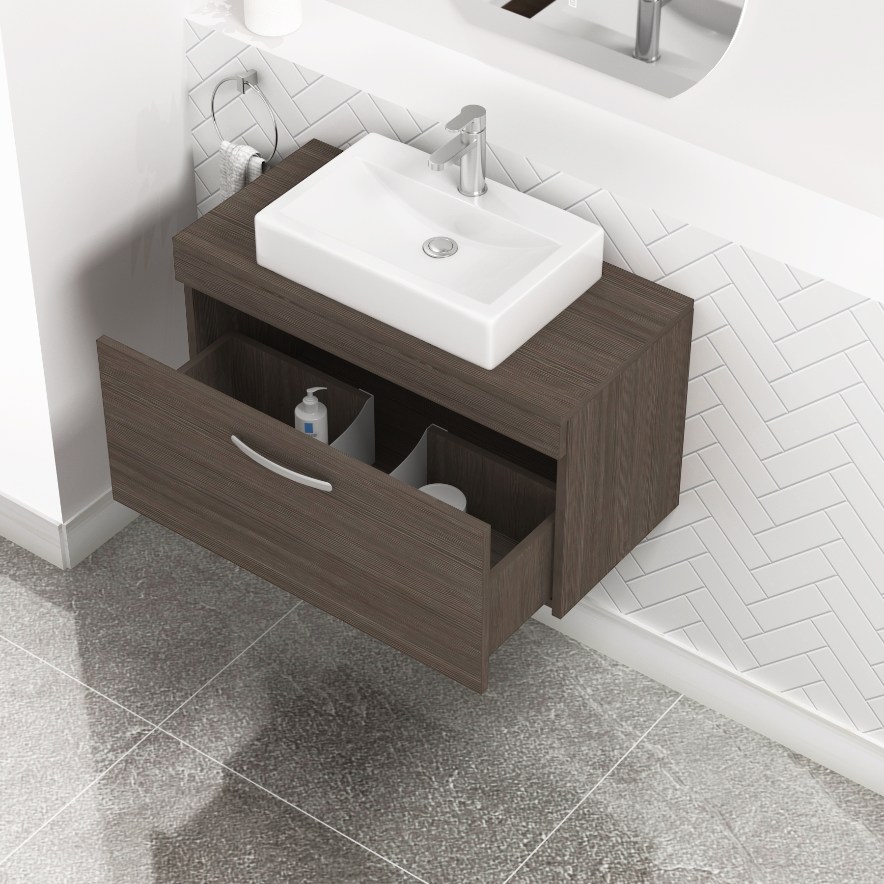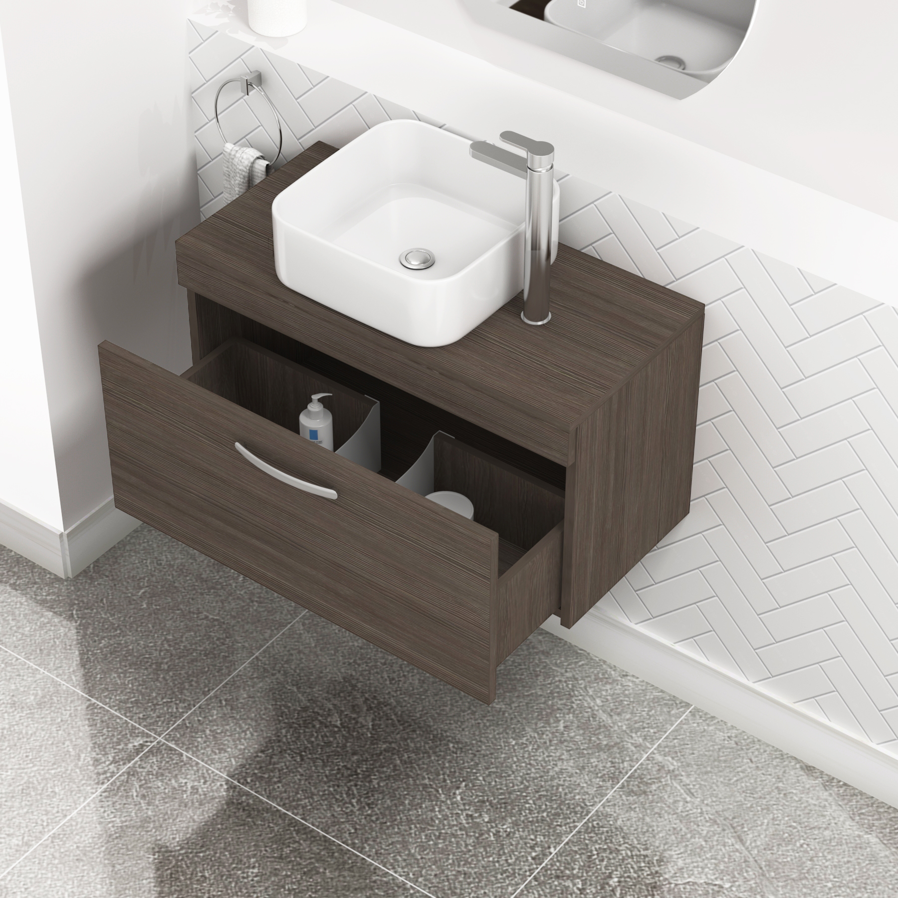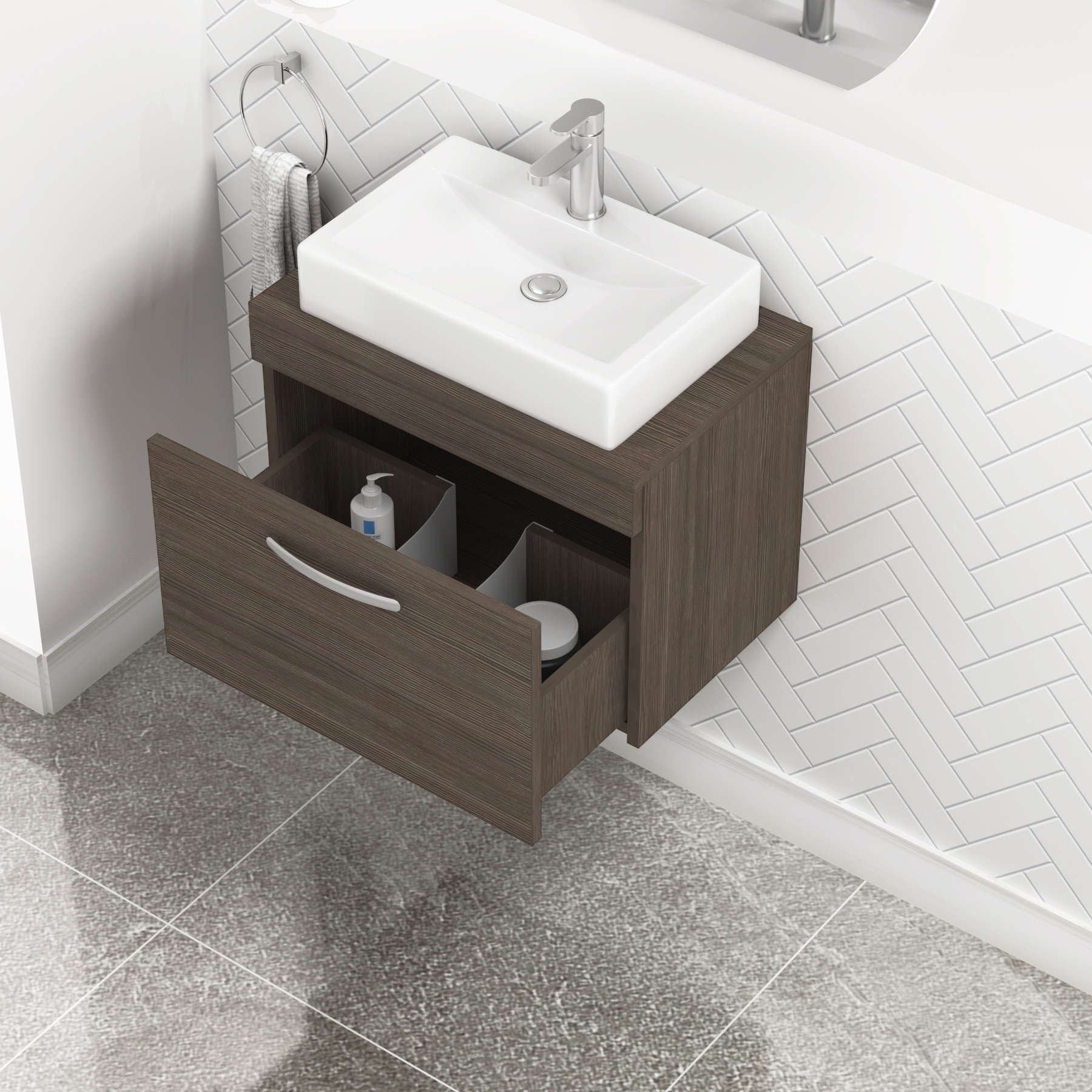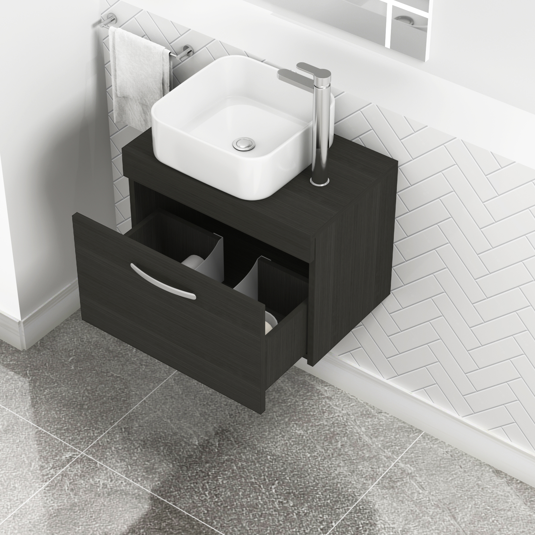 Turin 500mm Grey Elm 1 Drawer Wall Hung Count...