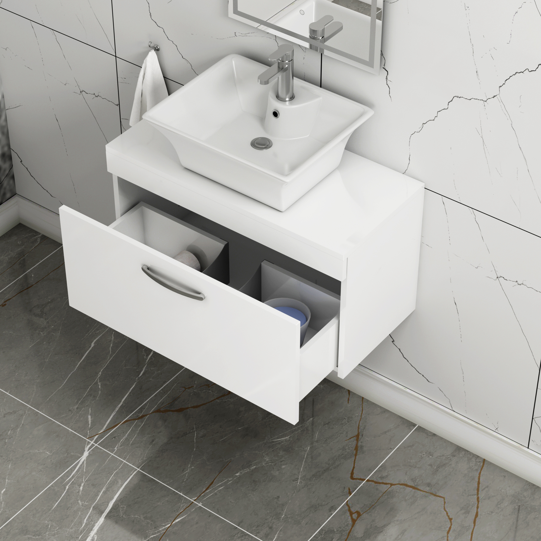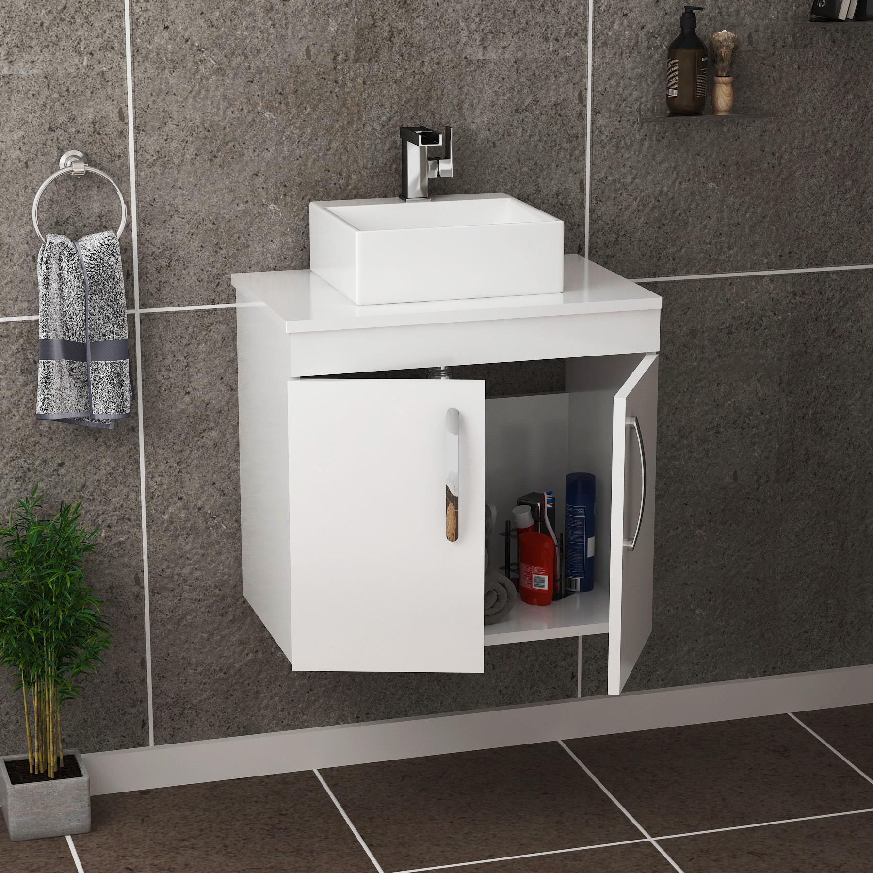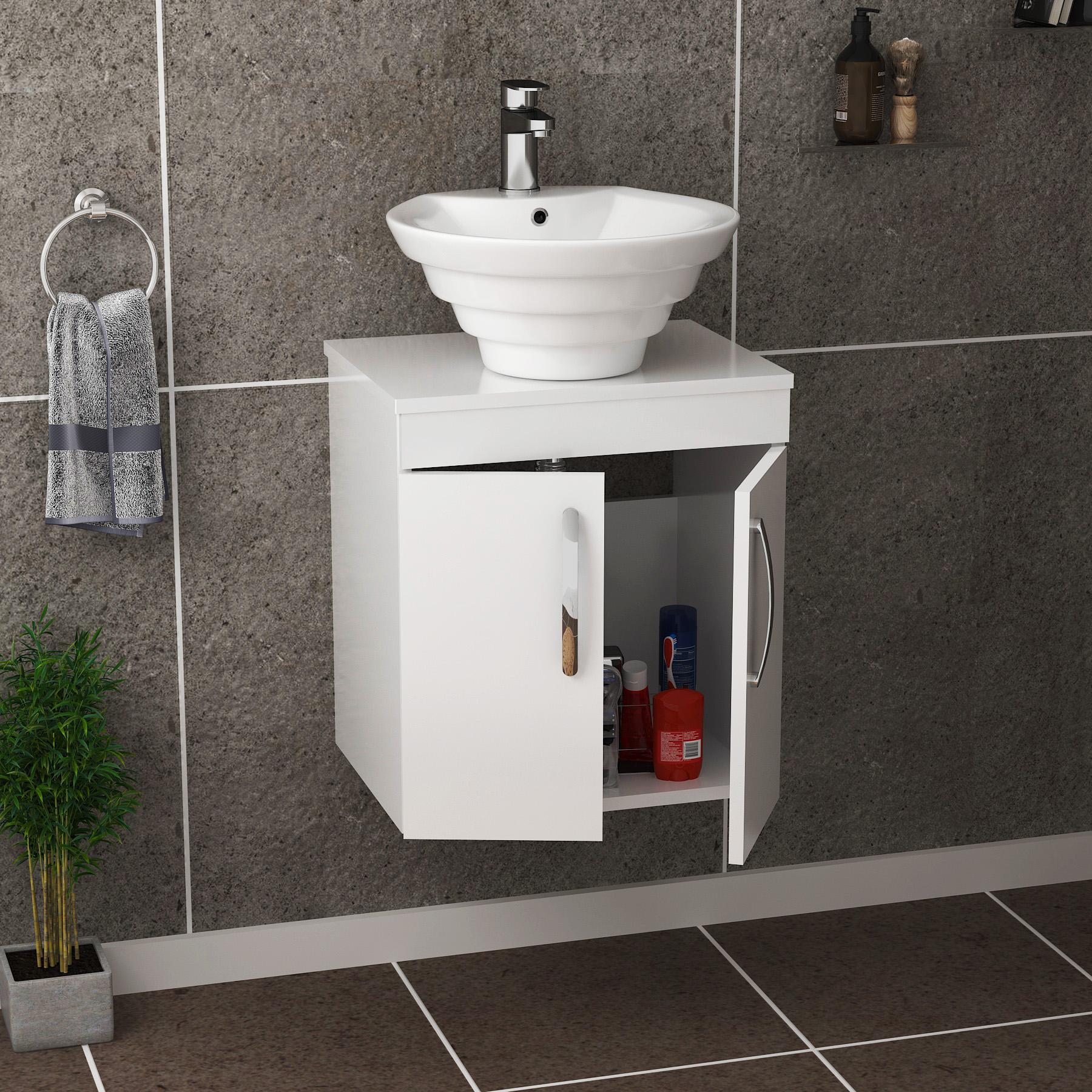 Turin 500mm Gloss White Wall Hung Worktop Van...