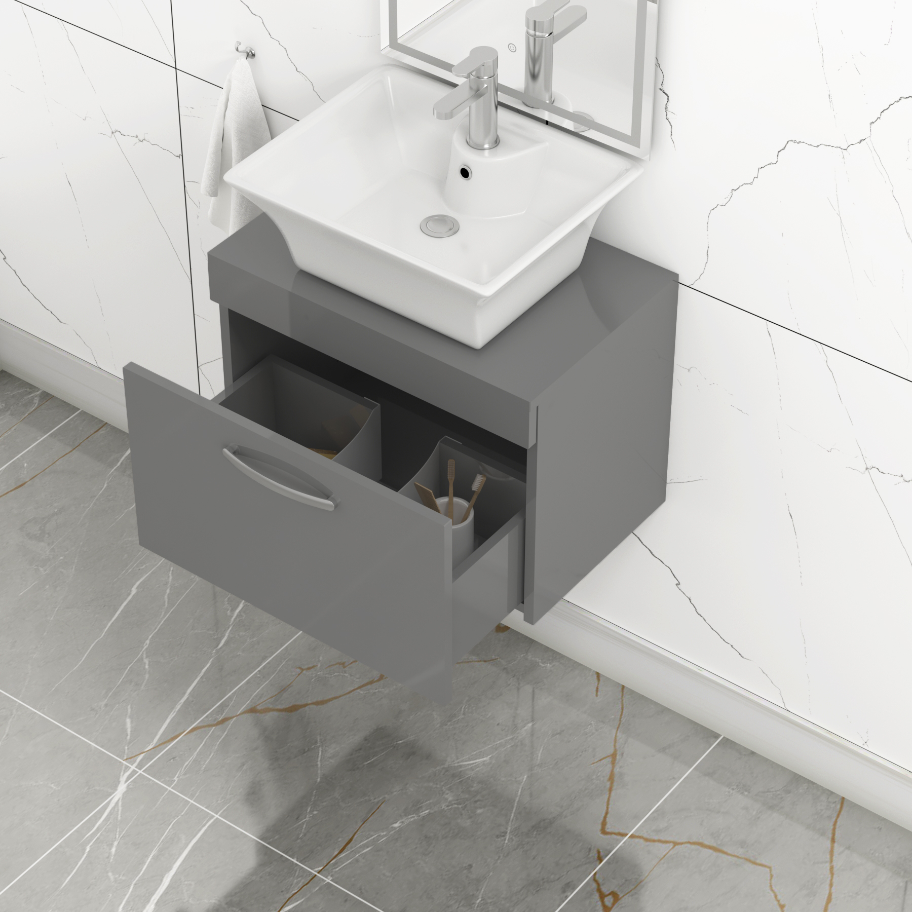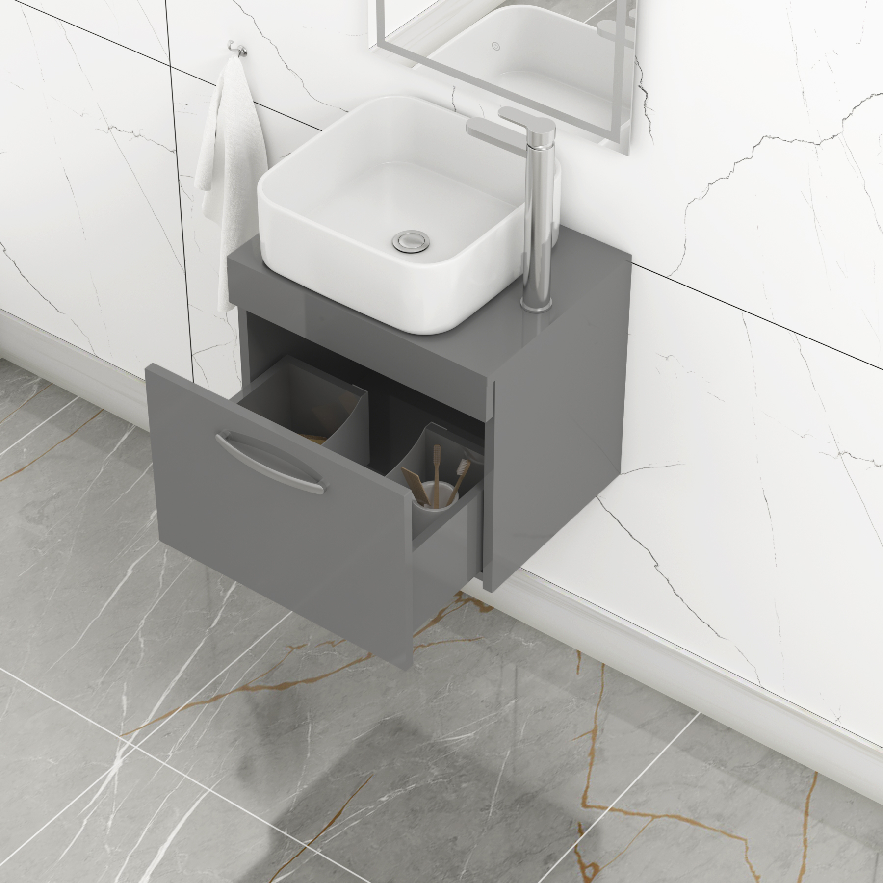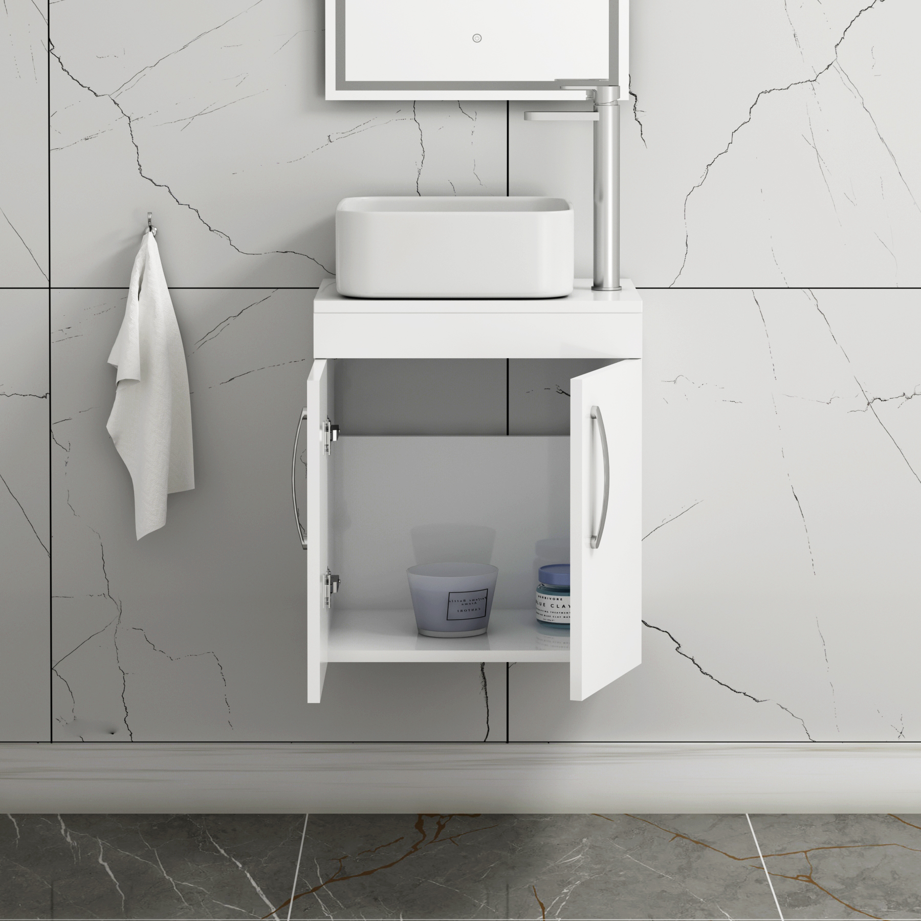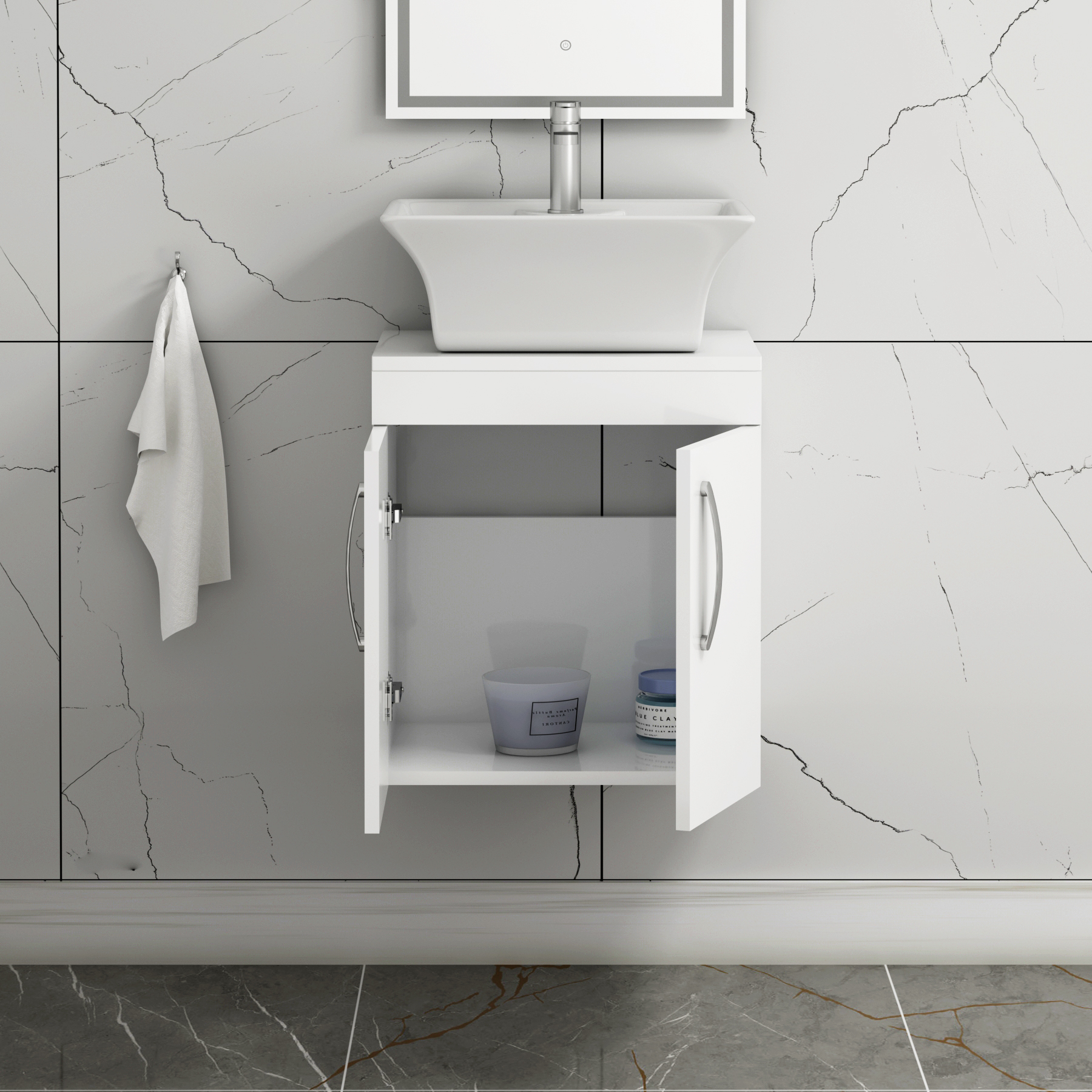 Turin 500mm Gloss White Wall Hung Worktop Van...
