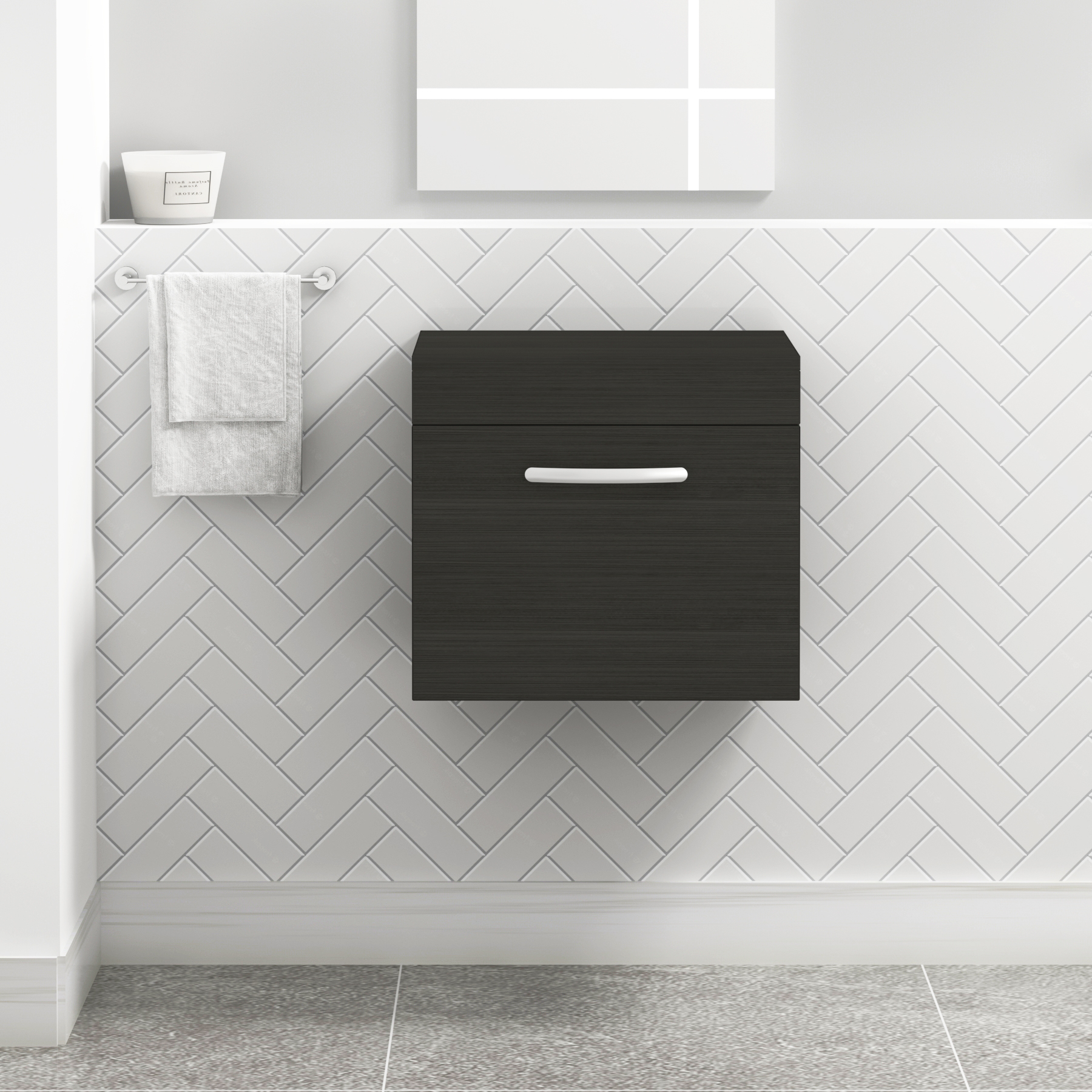 Turin 600mm Hale Black 1-Drawer Wall Hung Uni...