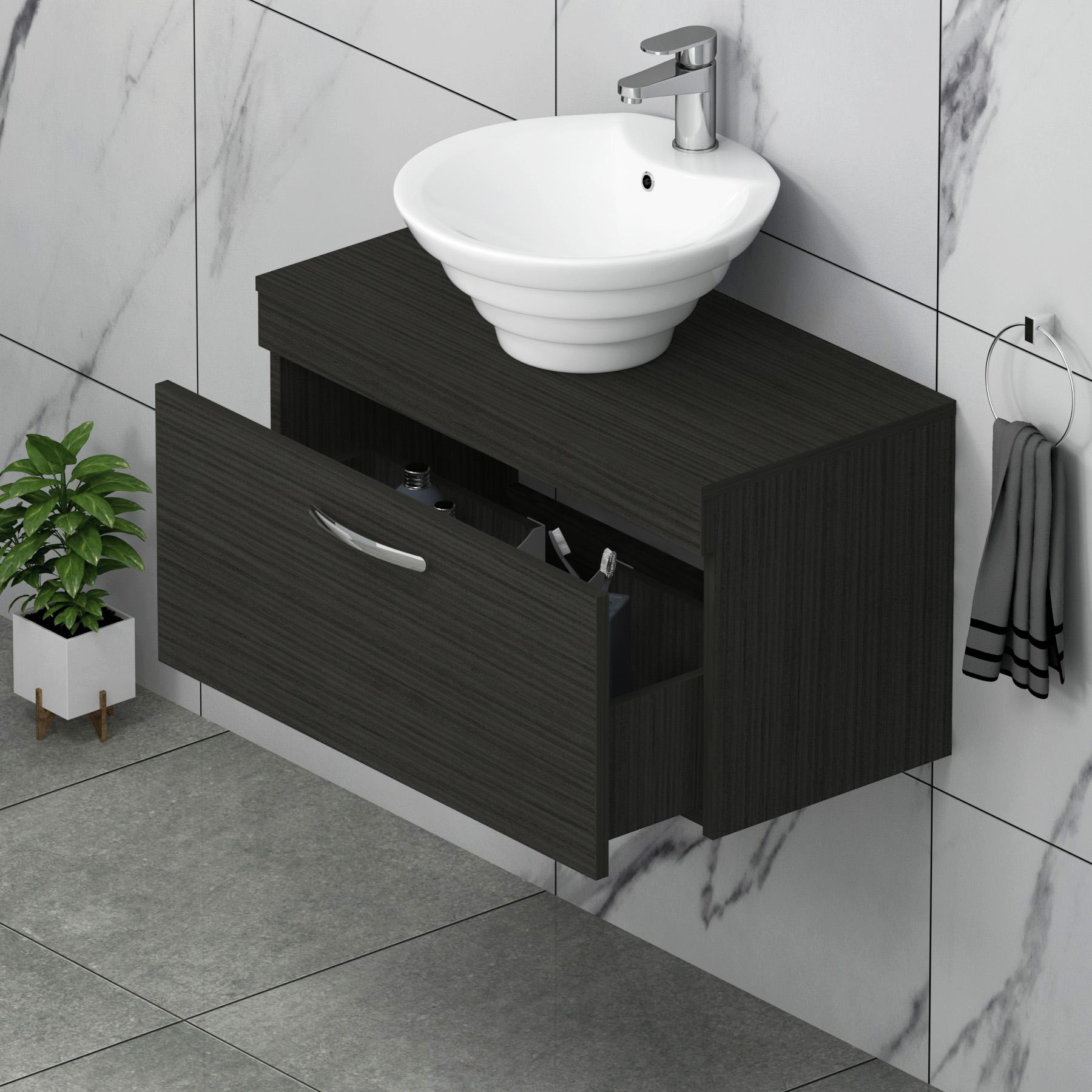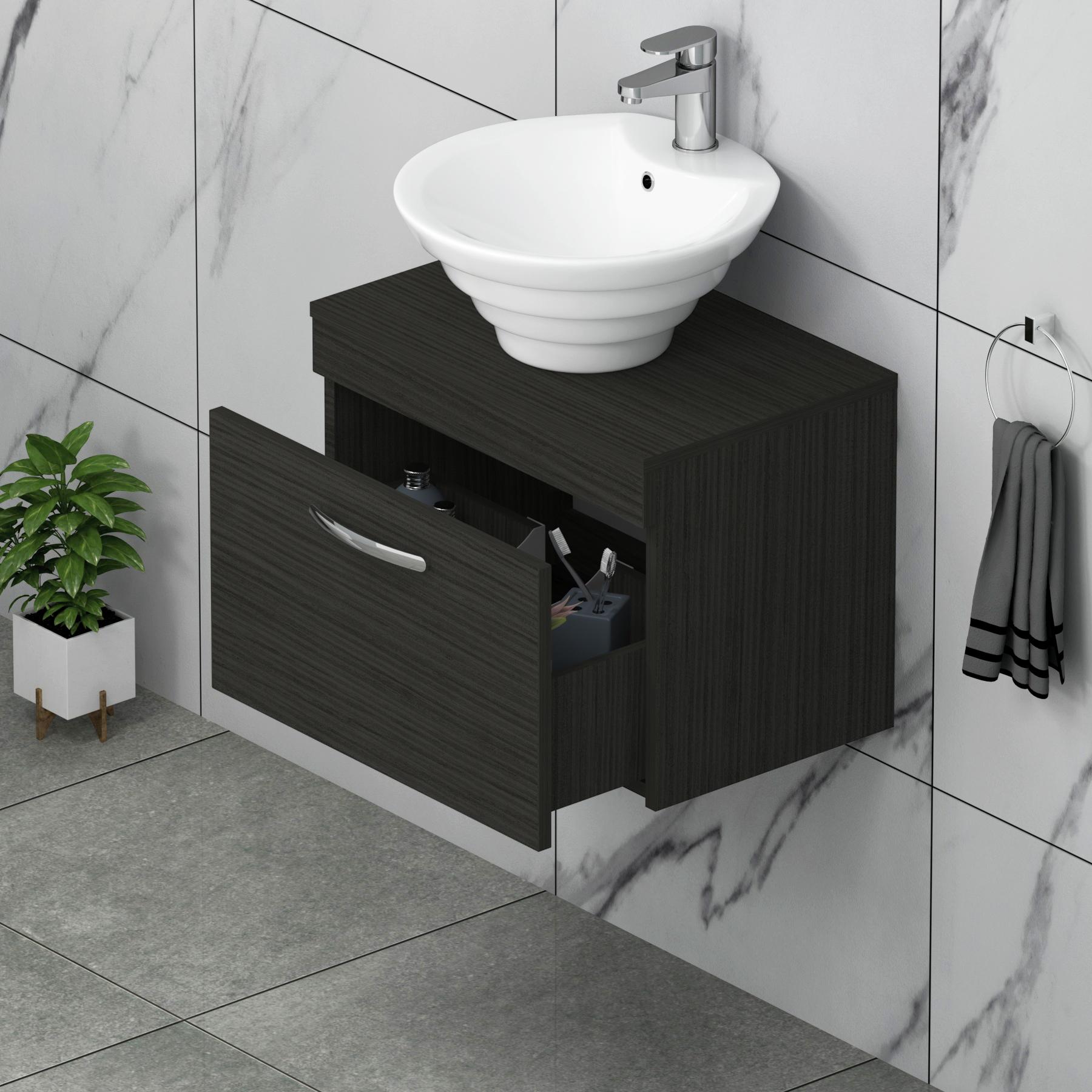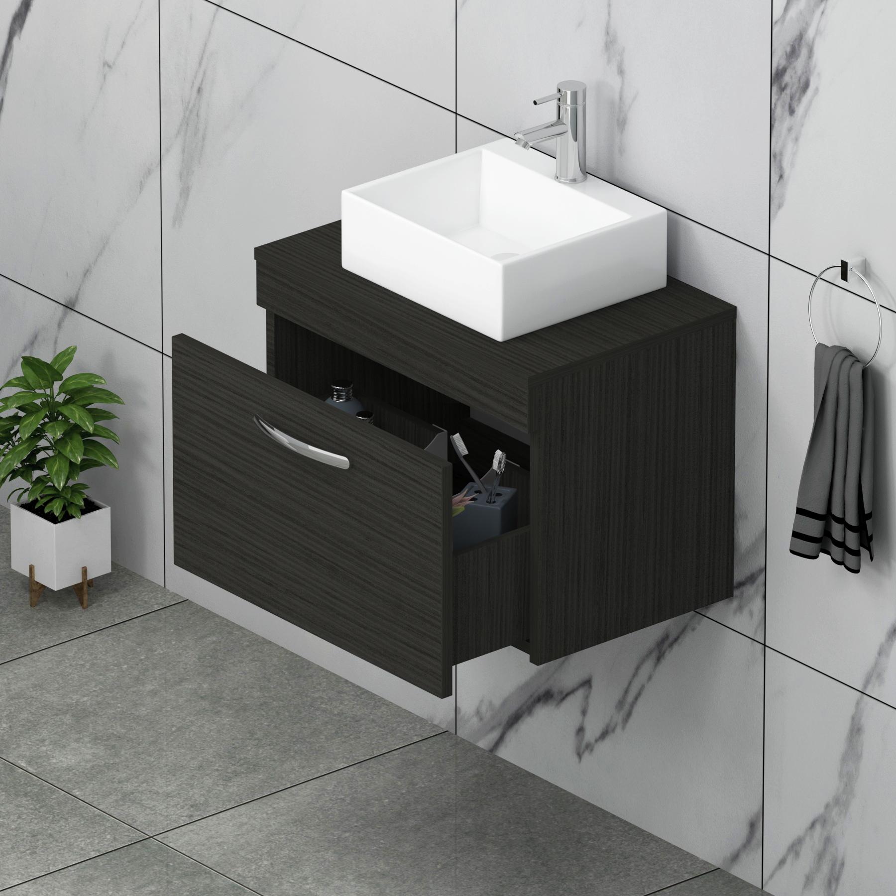 Turin 600mm Hale Black Wall Hung Worktop Vani...