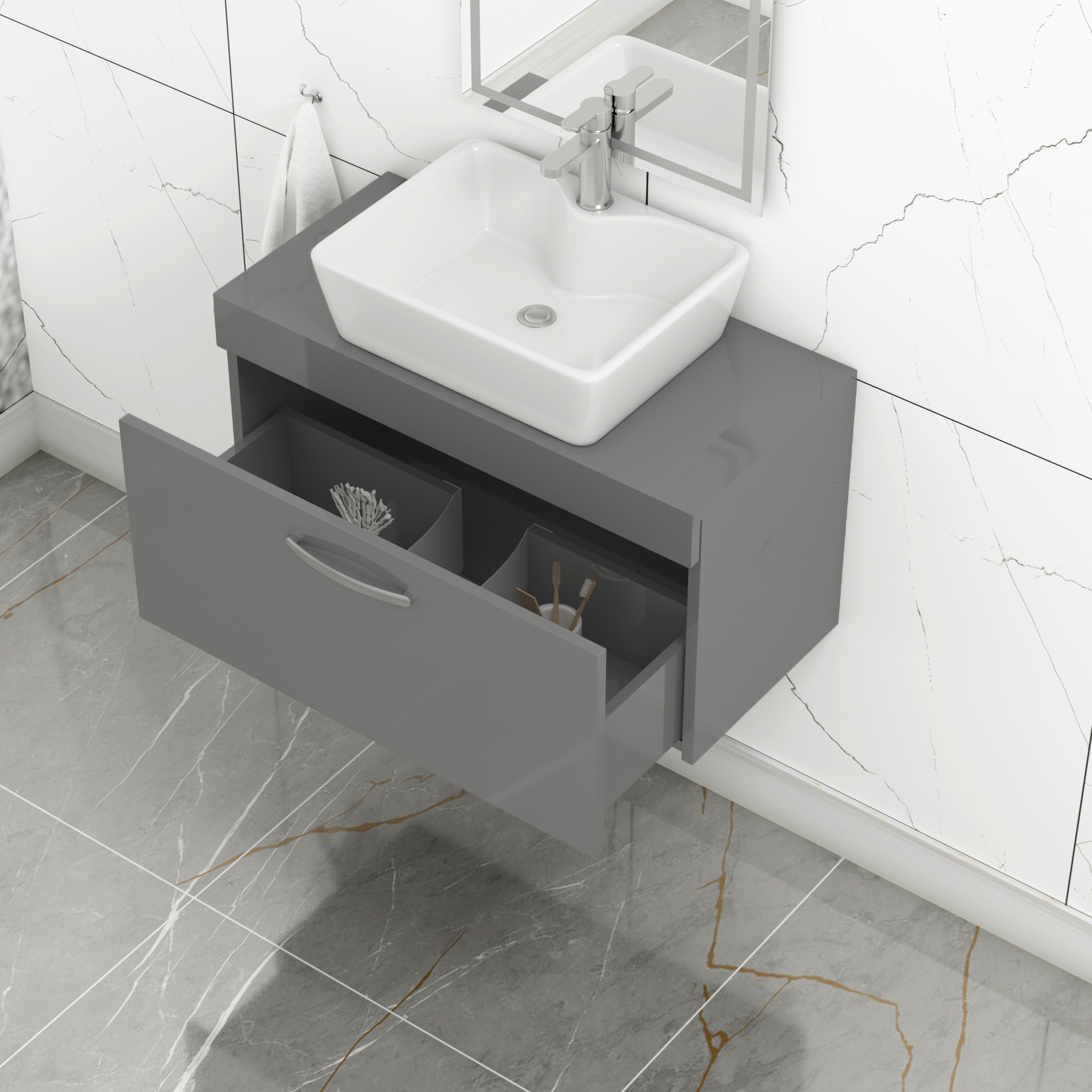 Turin 800mm Indigo Grey Gloss 1-Drawer Wall H...