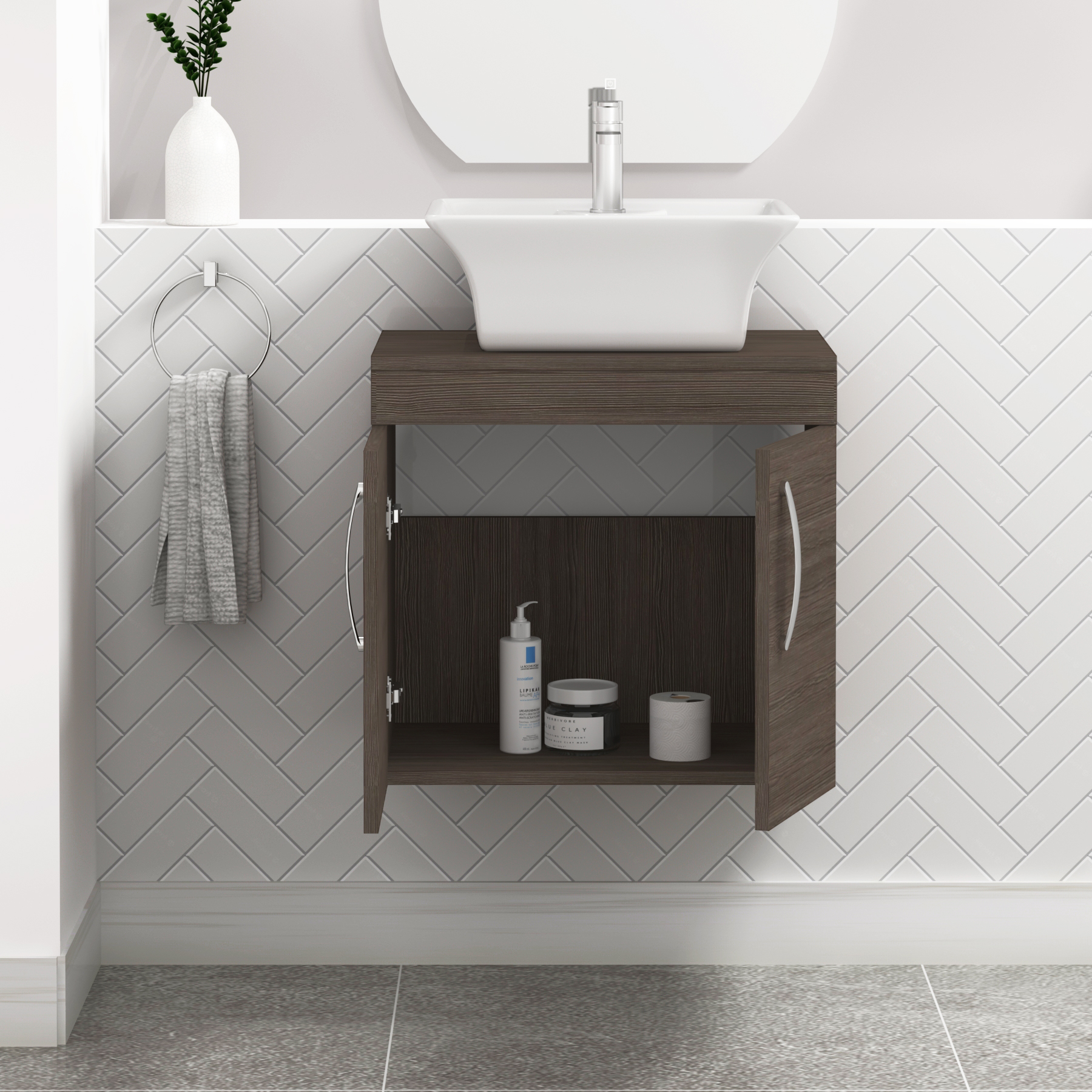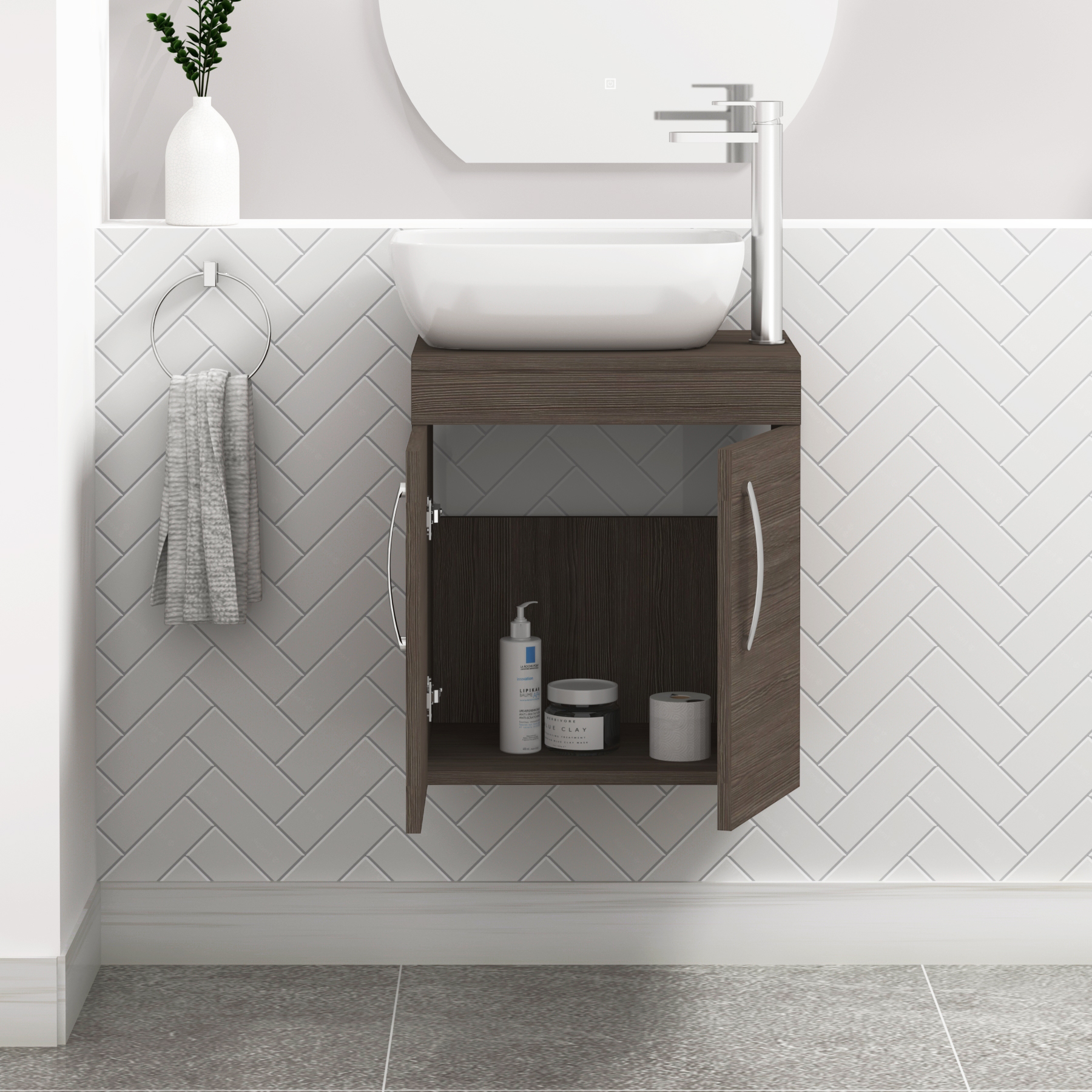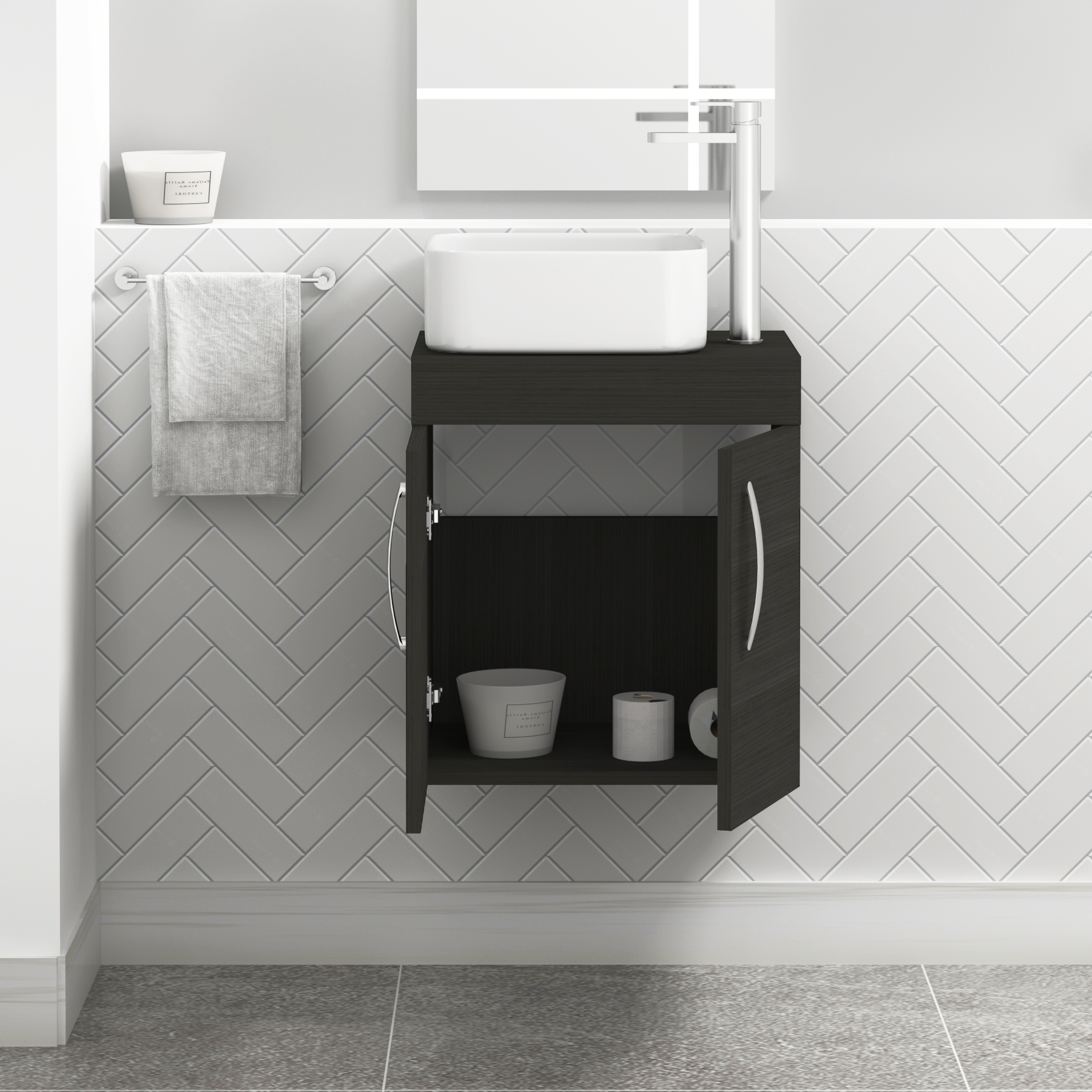Turin 500mm Wall Hung Vanity Unit 2 Door Grey...