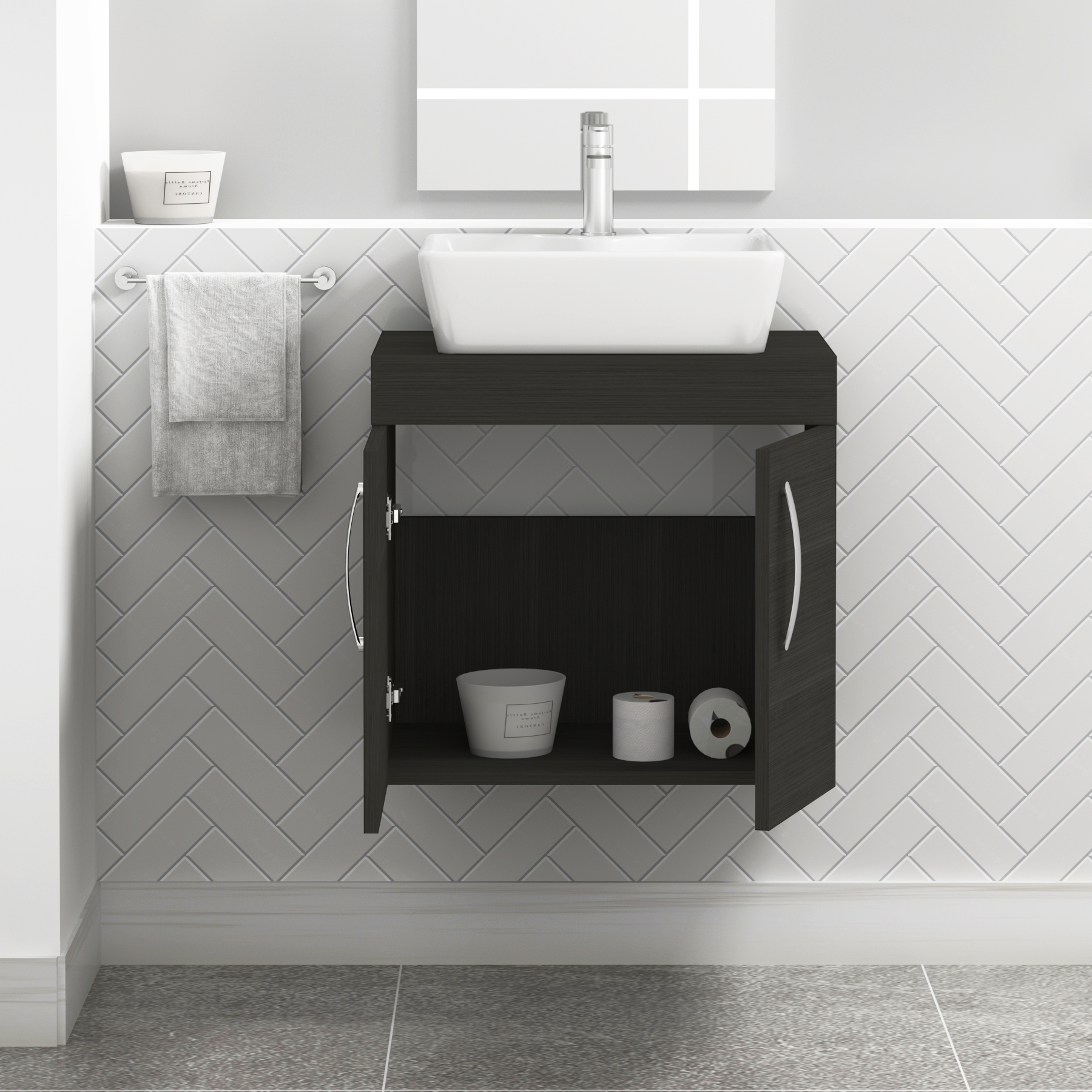 Turin 600mm Wall Hung Vanity Unit 2 Door Grey...