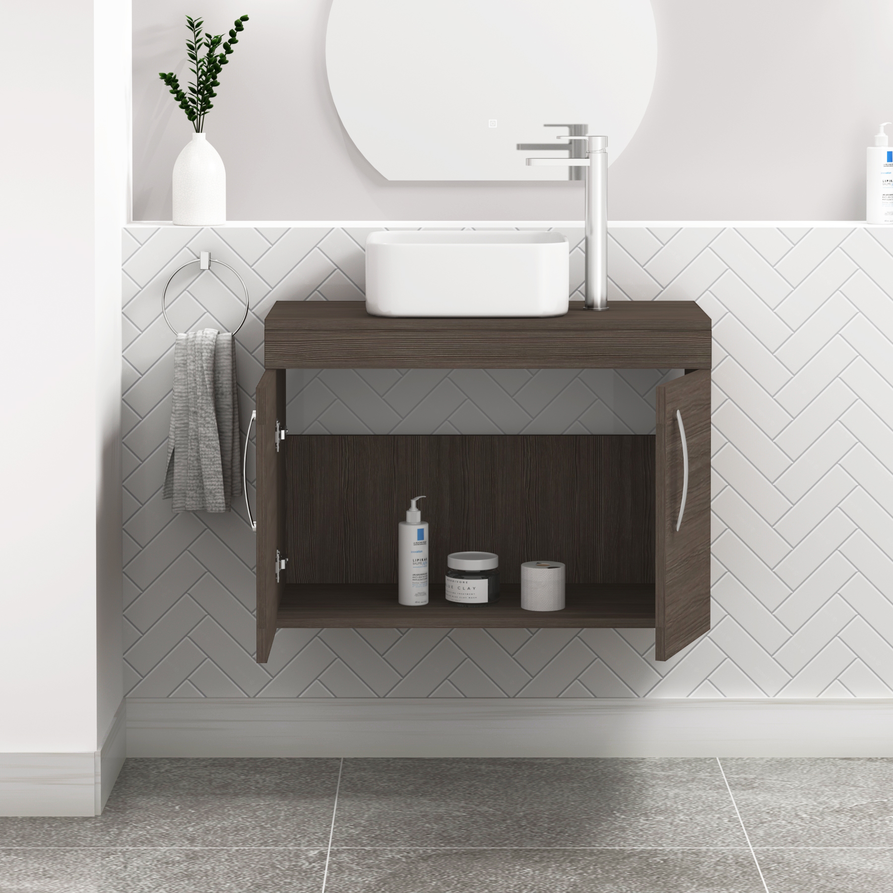 Turin 800mm Wall Hung Vanity Unit 2 Door Grey...