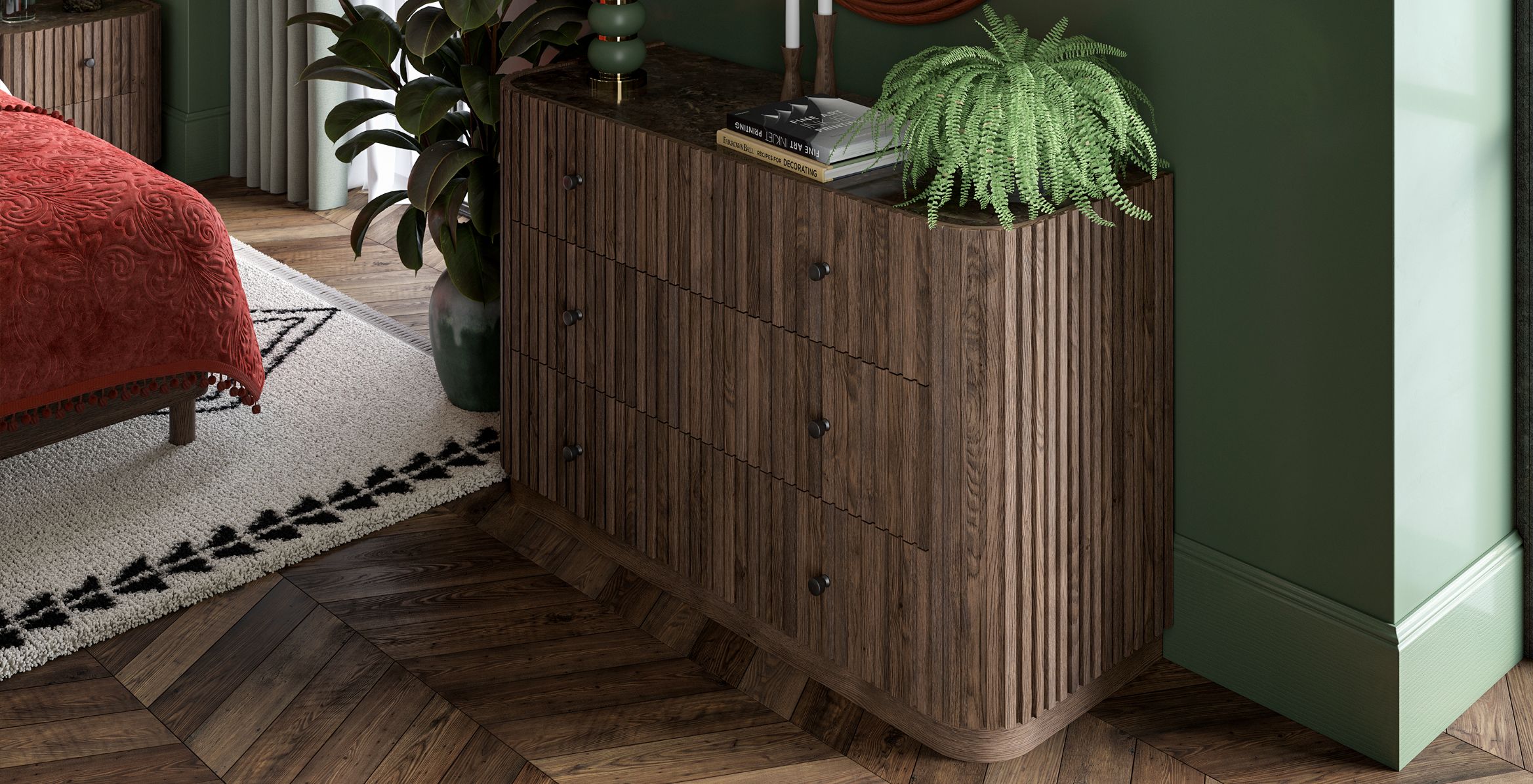 Jensen Chest of Drawers, Dark Wood / Rattan