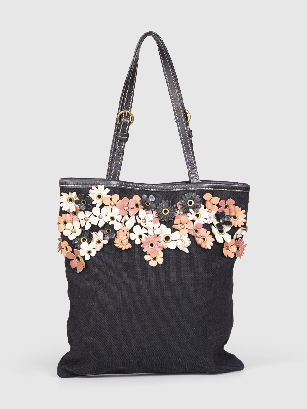 Miu Miu Black Floral Eyelets Tote Bag