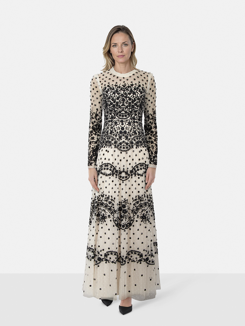 Needle & Thread Cream & Black Floral Lace Gow...