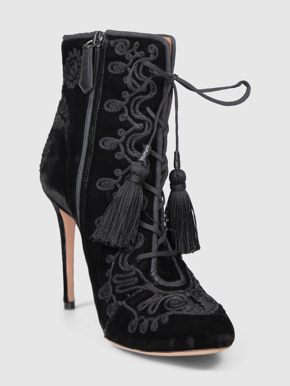 Aquazzura Black Velvet Embroidered Tassel Boo...