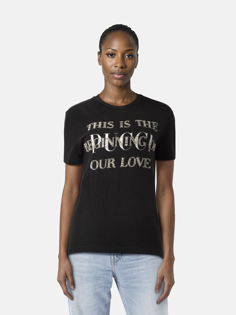 Emilio Pucci Black Crystal Embellished T-Shir...