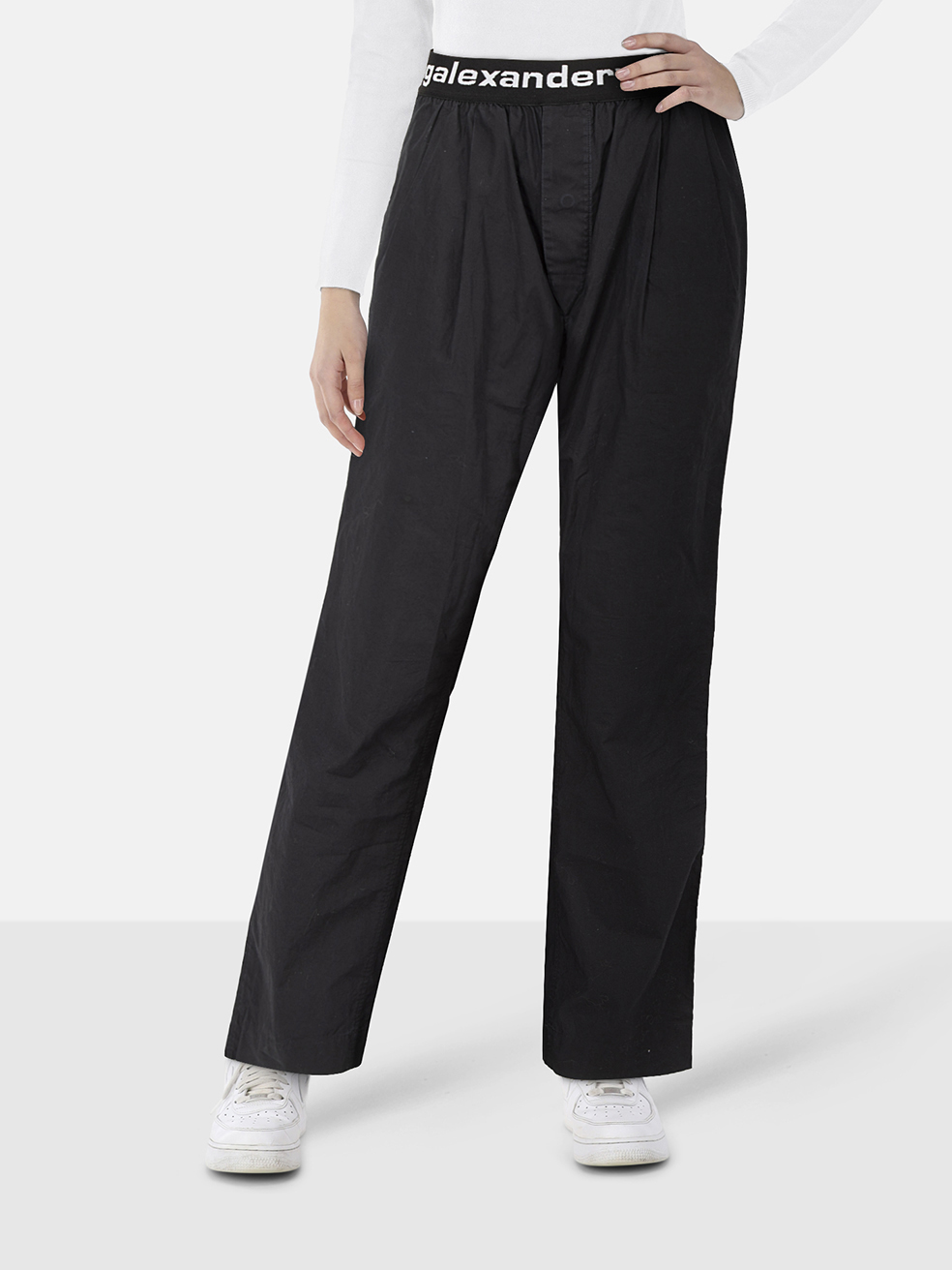 Alexander Wang Black Logo Elastic Waist Trous...