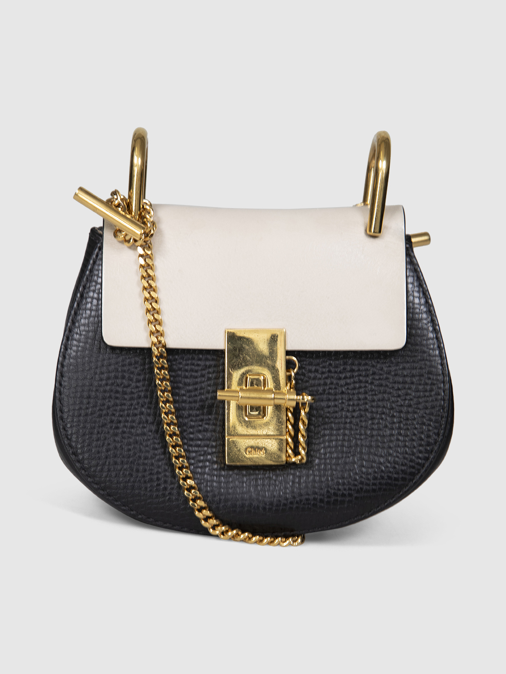 Chlo� Beige & Black Leather Nano Drew Bag