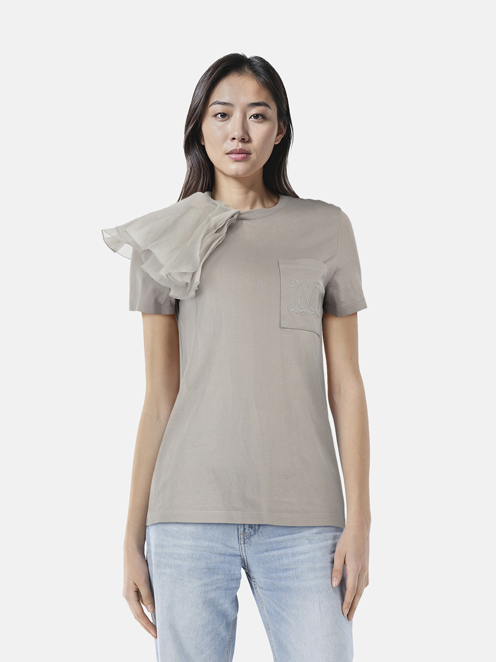 Max Mara Grey Ruffle Shoulder T-Shirt