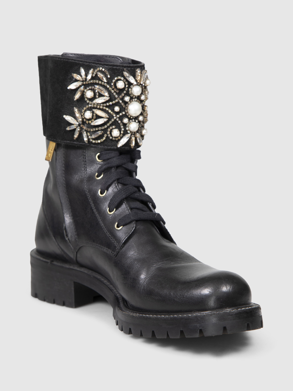 Rene Caovilla Black Embellished Leather Boots