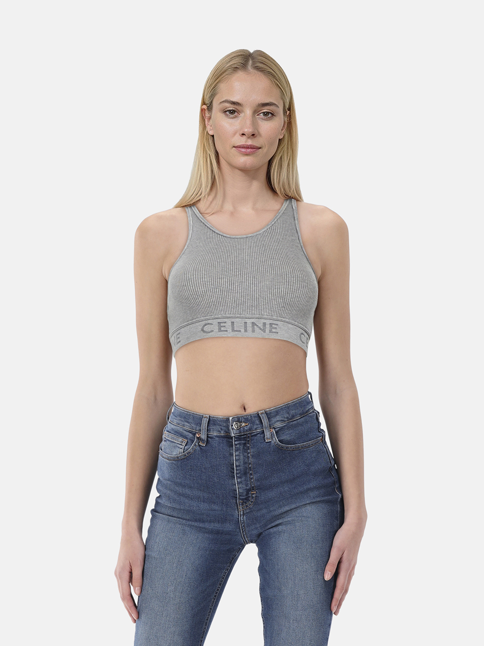 C�line Grey Logo Trim Crop Top