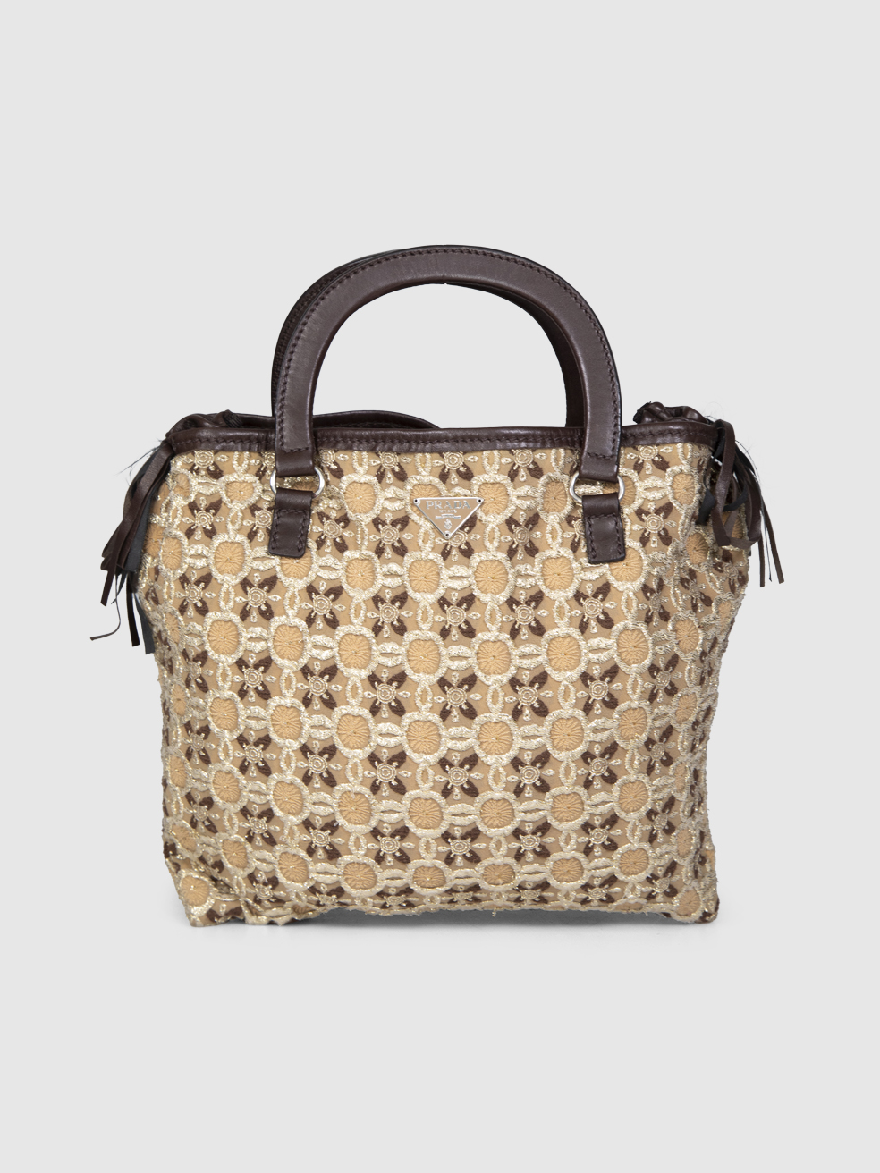 Prada Beige & Gold Embroidered Handbag