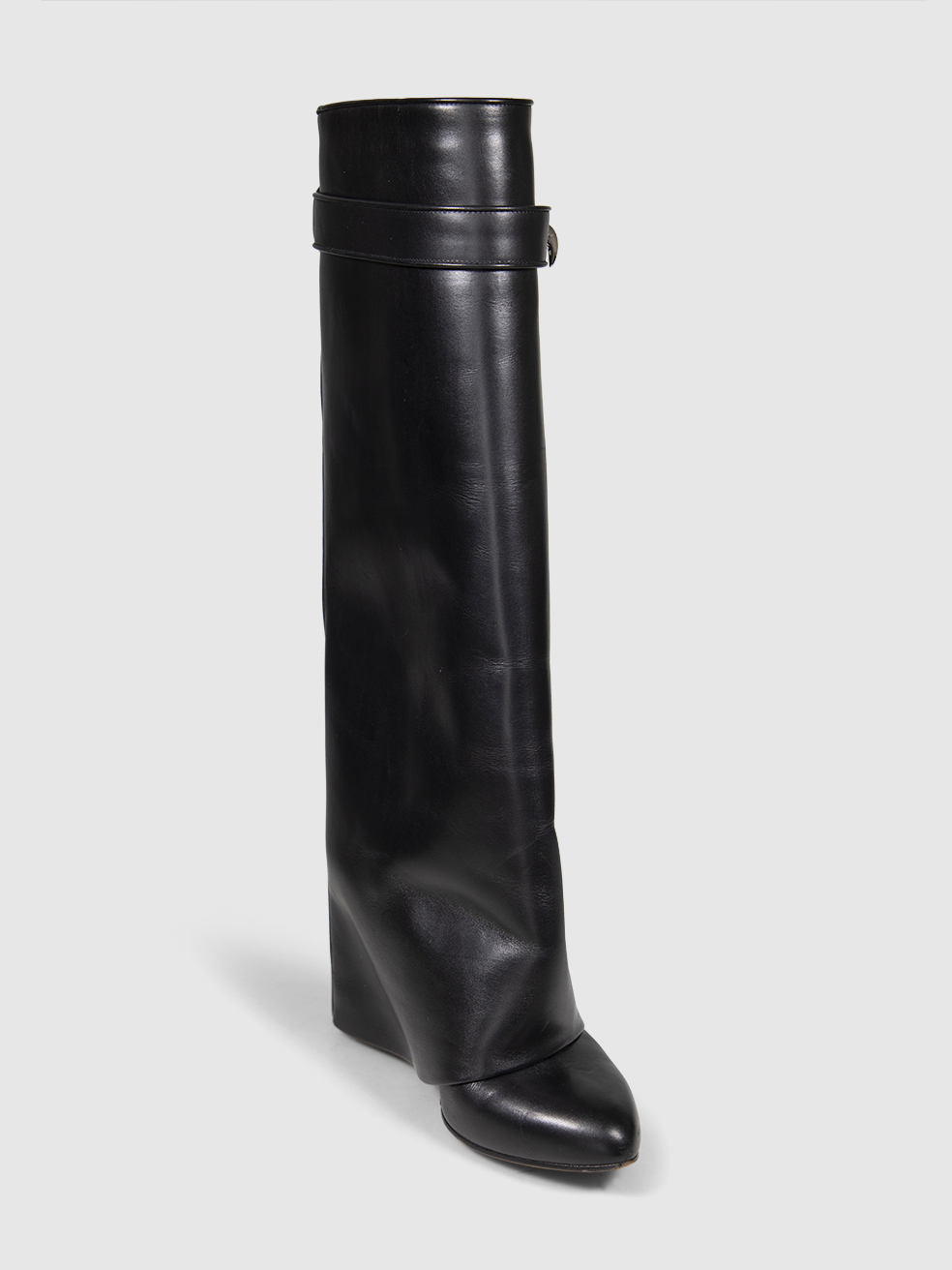 Givenchy Black Leather Shark Lock Knee High B...