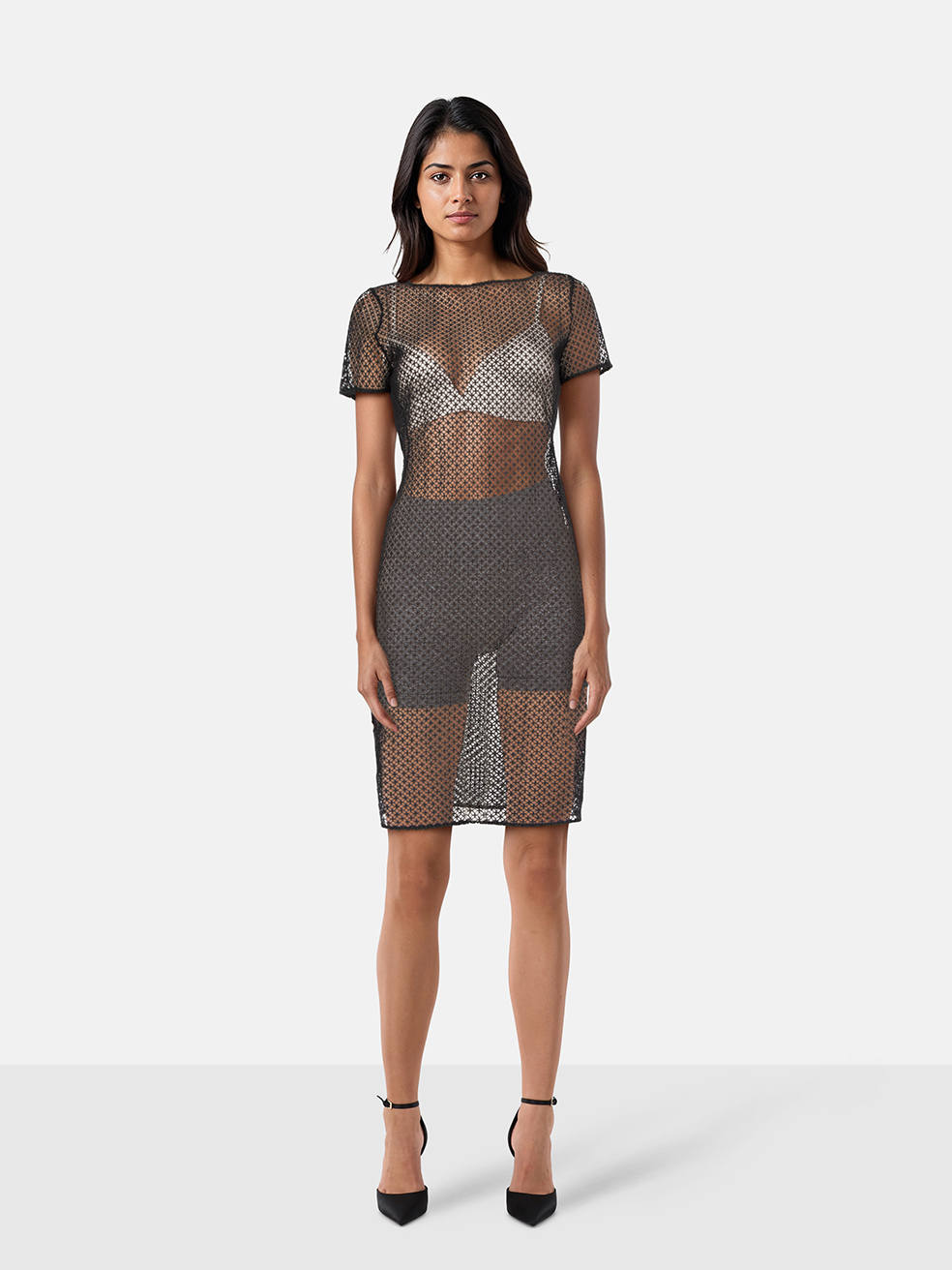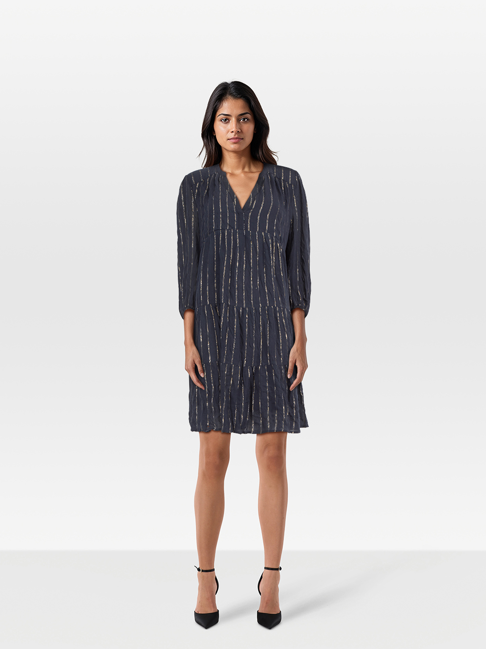 ba&sh Navy Metallic Stripe Knee Length Dress