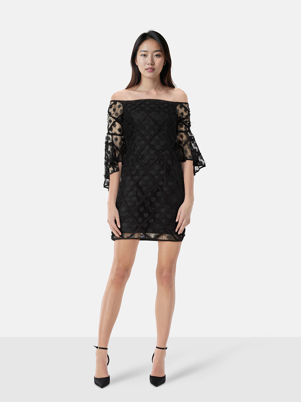 Alice + Olivia Burgundy Bell Sleeve Shift Dre...
