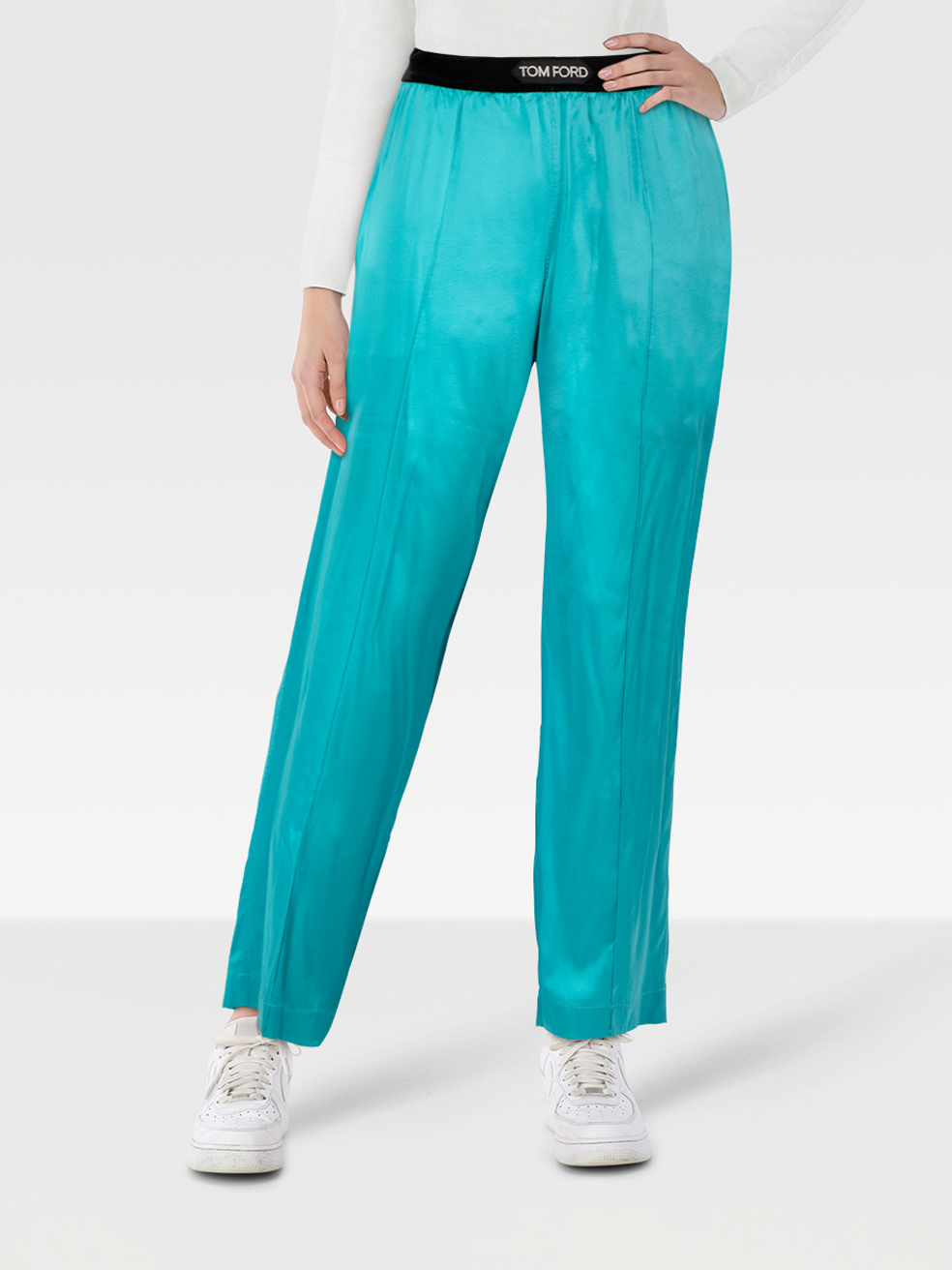 Tom Ford Blue Silk Logo Band Straight Leg Tro...