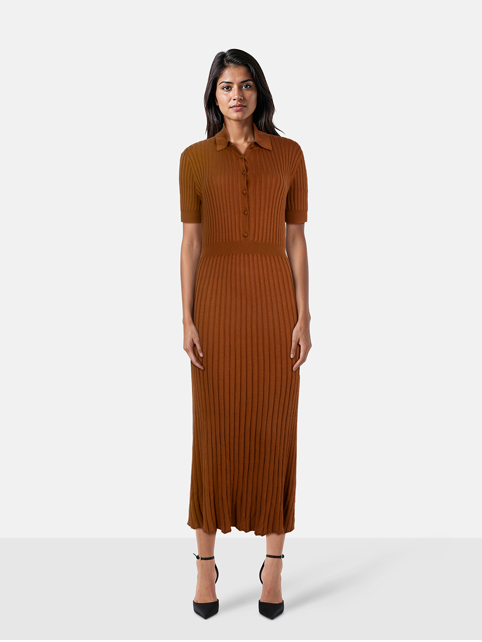 Gabriela Hearst Brown Silk Ribbed Knit Midi D...
