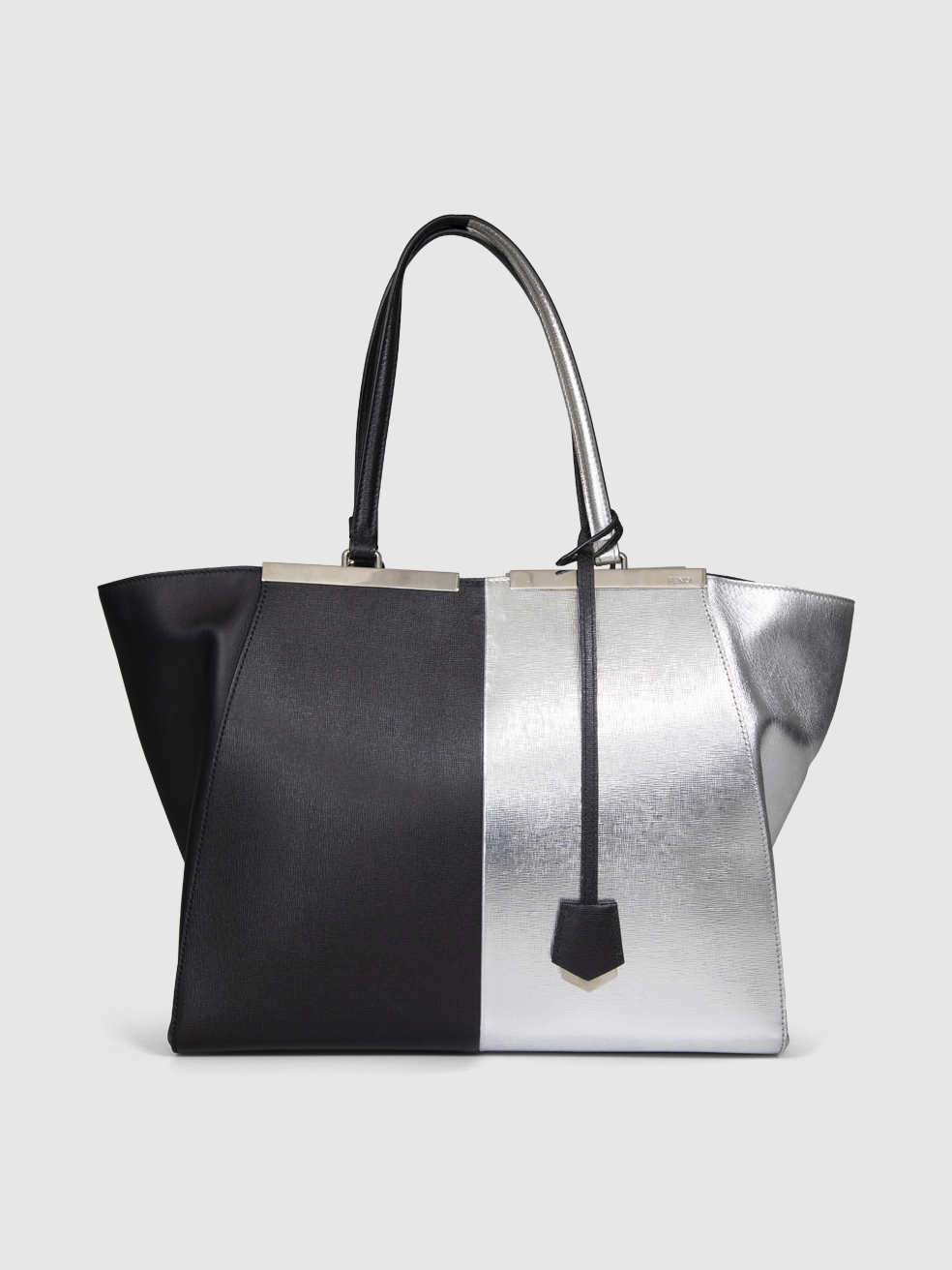 Fendi Black & Silver Leather Medium 2Jours To...
