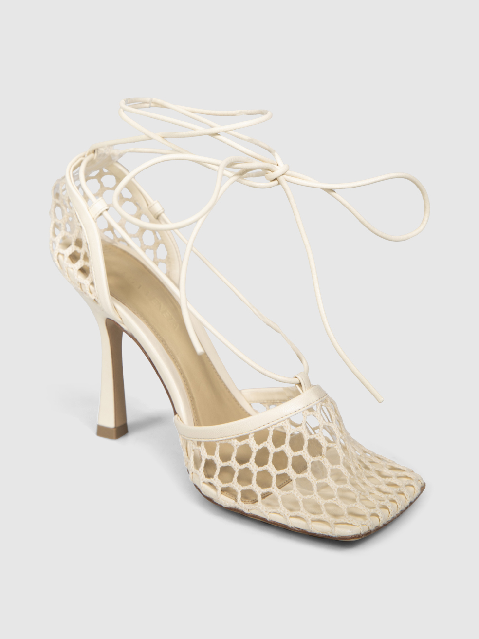 Bottega Veneta Ecru Mesh Stretch Lace-Up Sand...