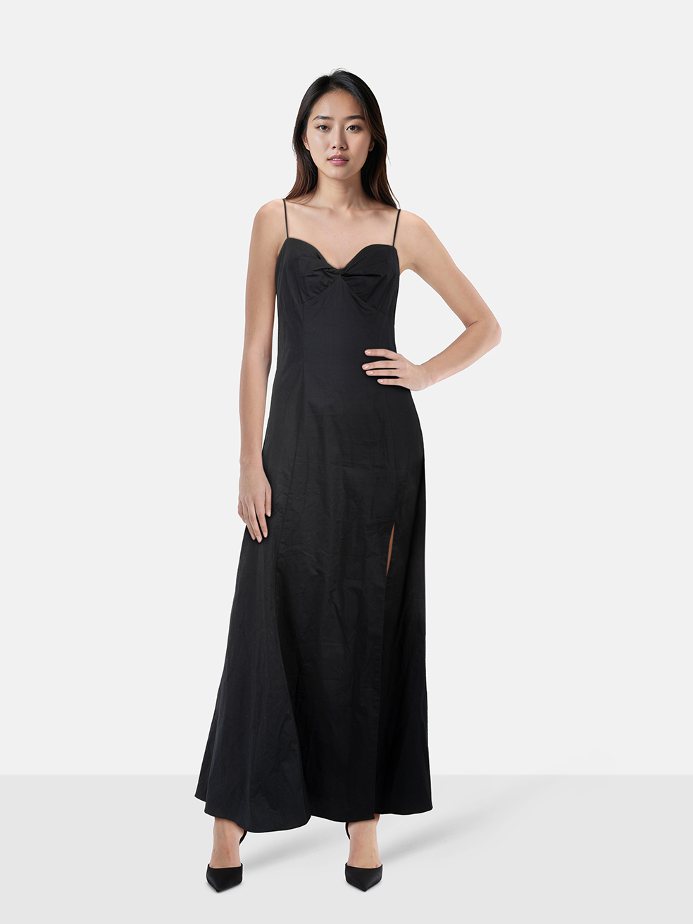STAUD Black Maxi Ruched Back Panel Dress