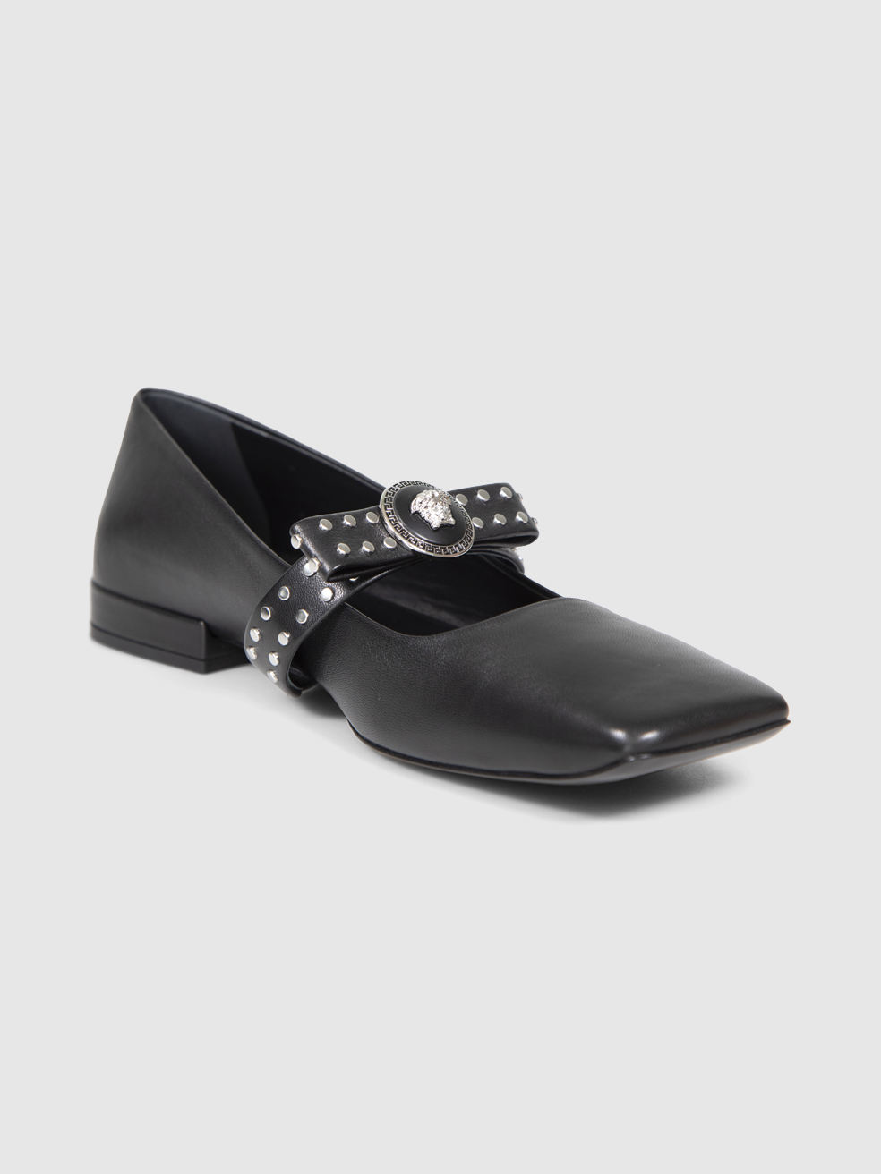 Versace Black Leather Studded Bow Ballet Flat...