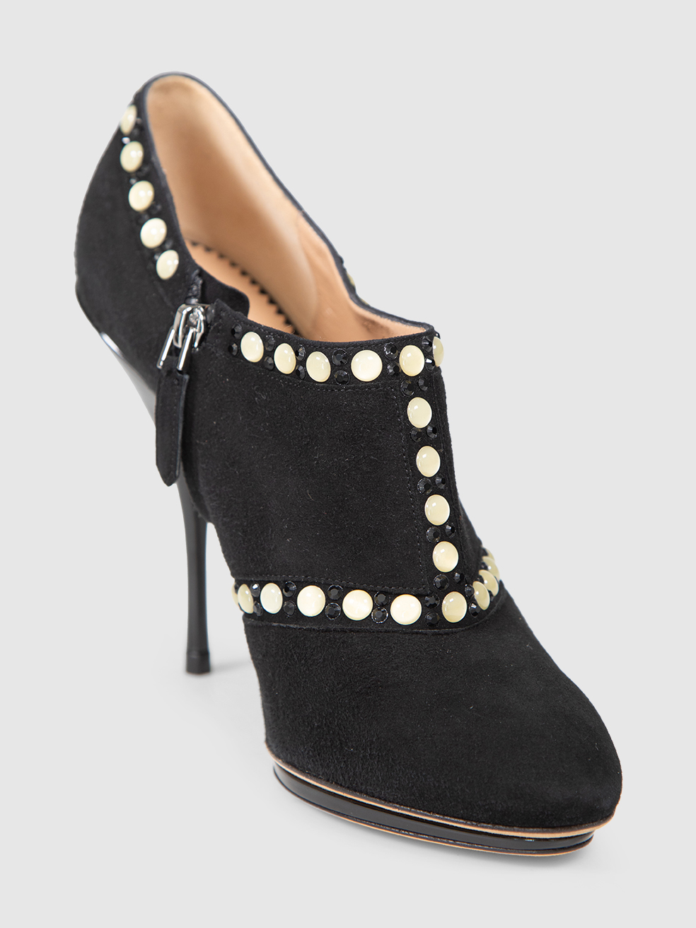 Alexander McQueen Navy Heeled Suede Ankle Boo...