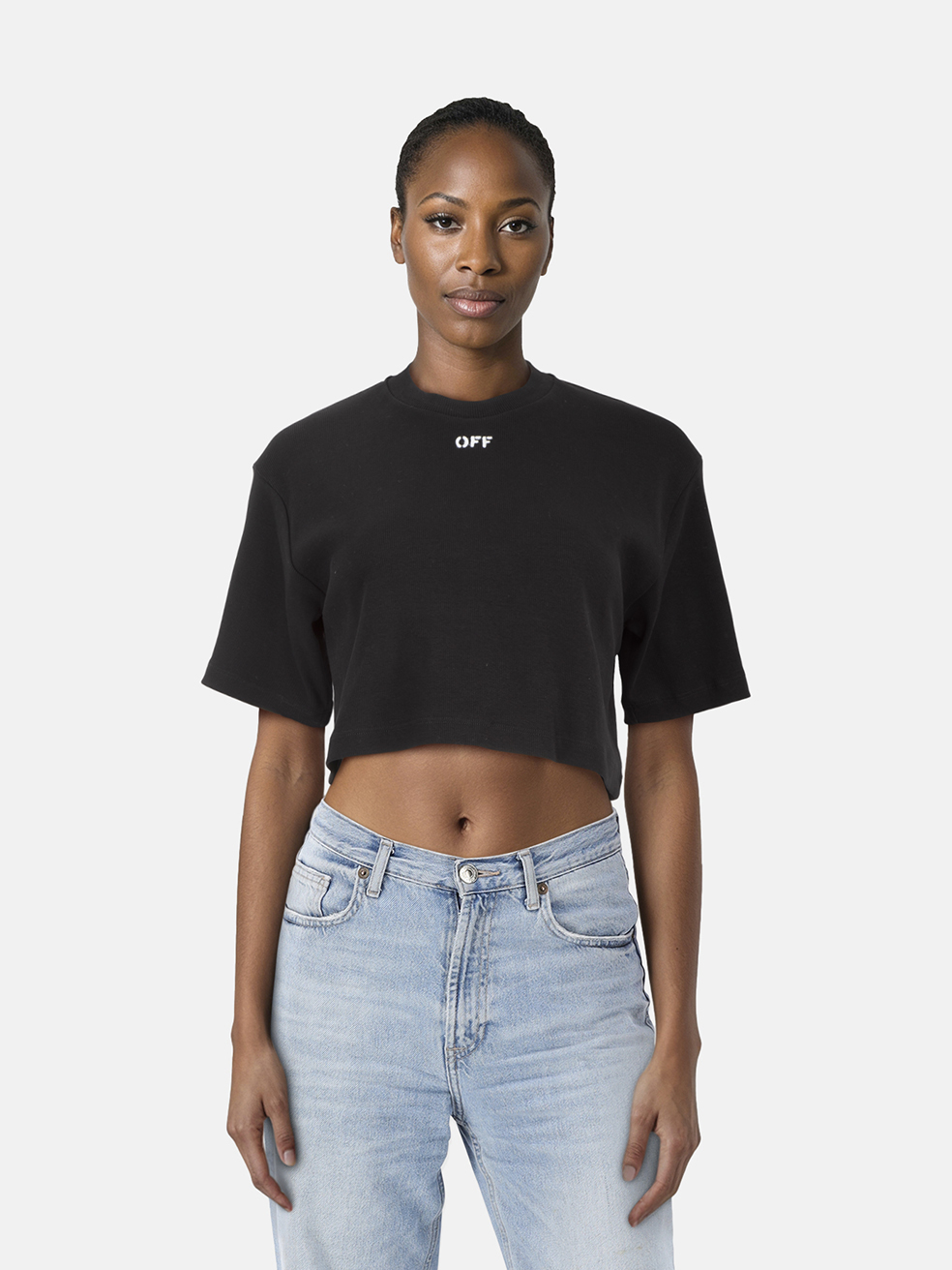 Off-White Black Logo Print Cropped T-Shirt