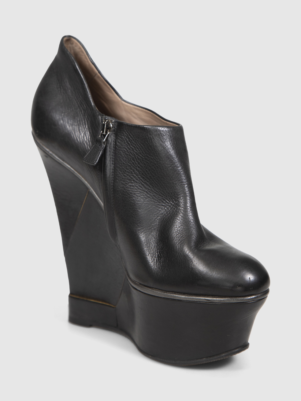 Lanvin 2010 Hiven Black Leather Wedge Ankle B...