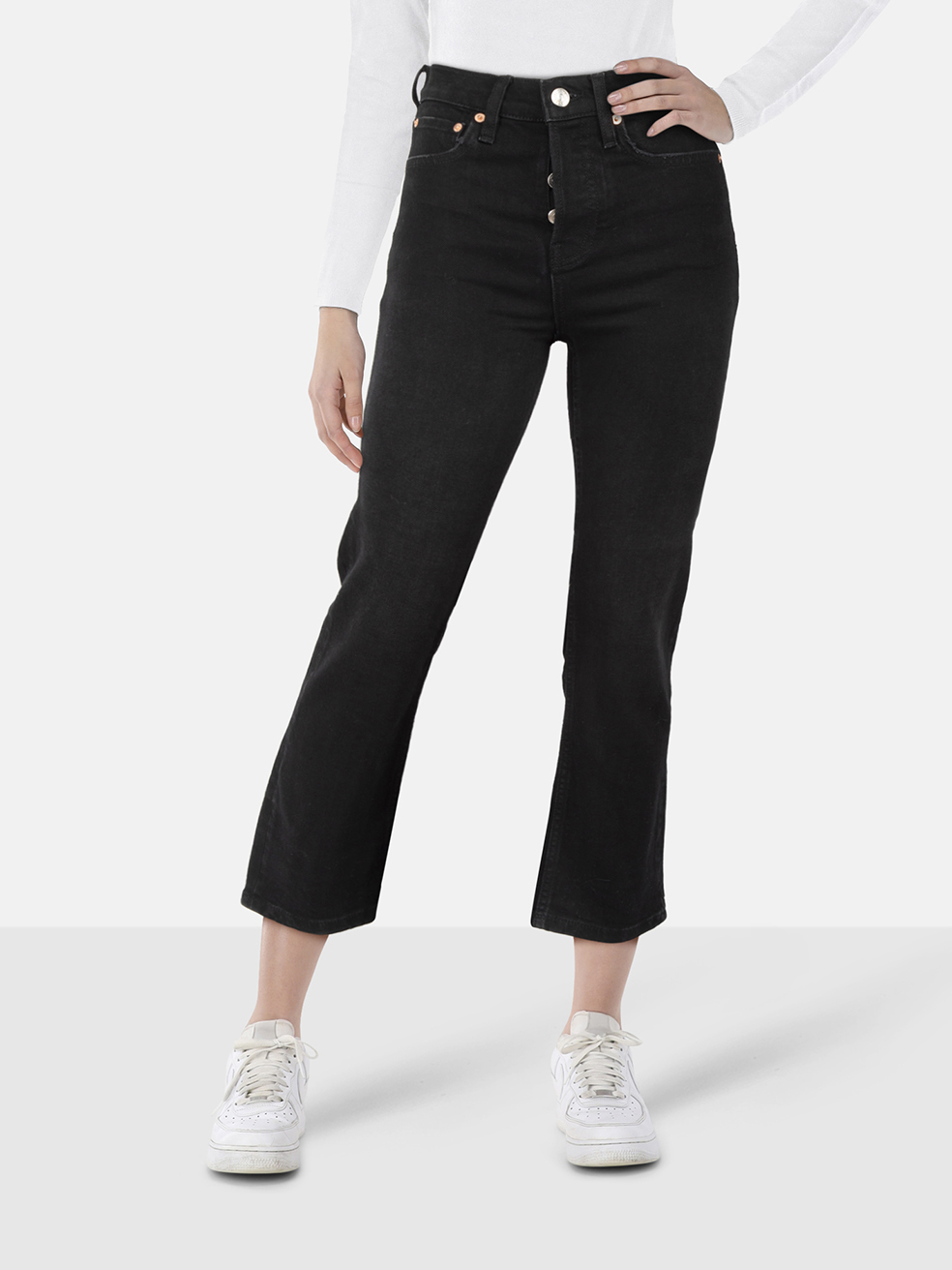 Maje Black Distressed Denim Straight Jeans