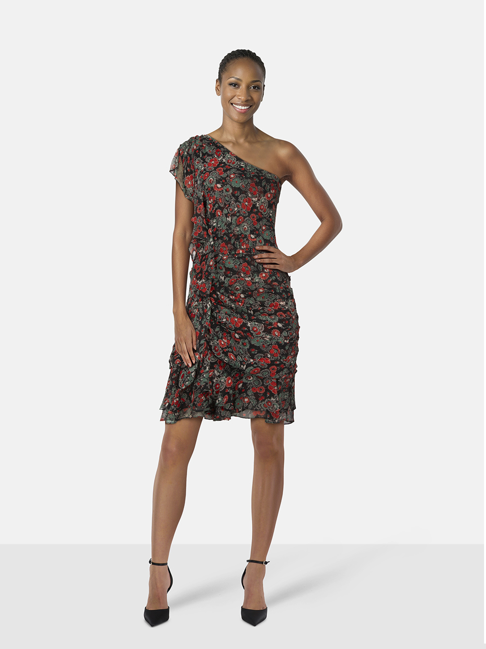 Veronica Beard Floral Silk One Shoulder Dress