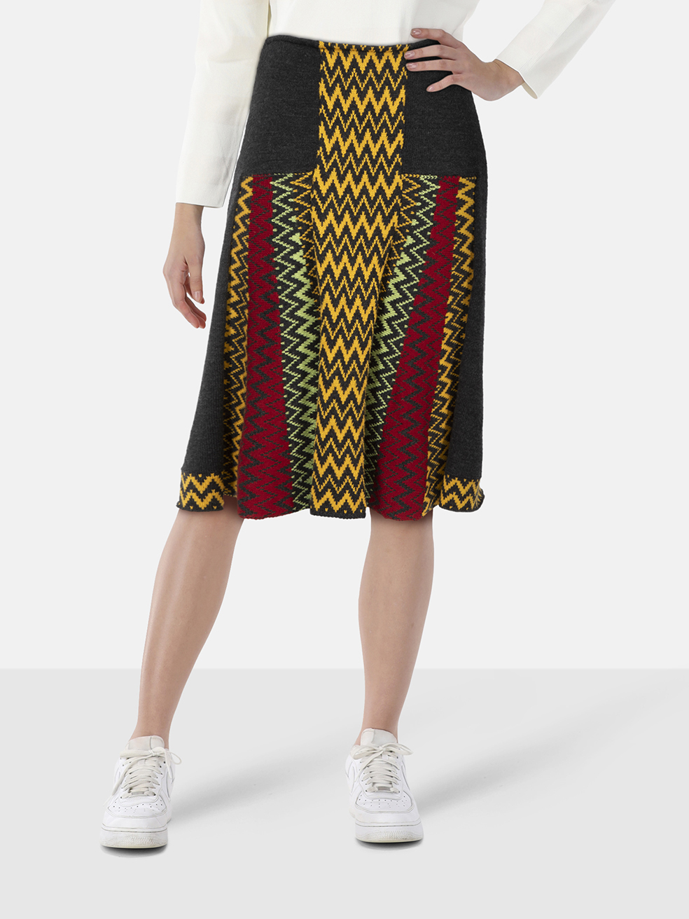 Etro Zig Zag Pattern Wool Midi Skirt