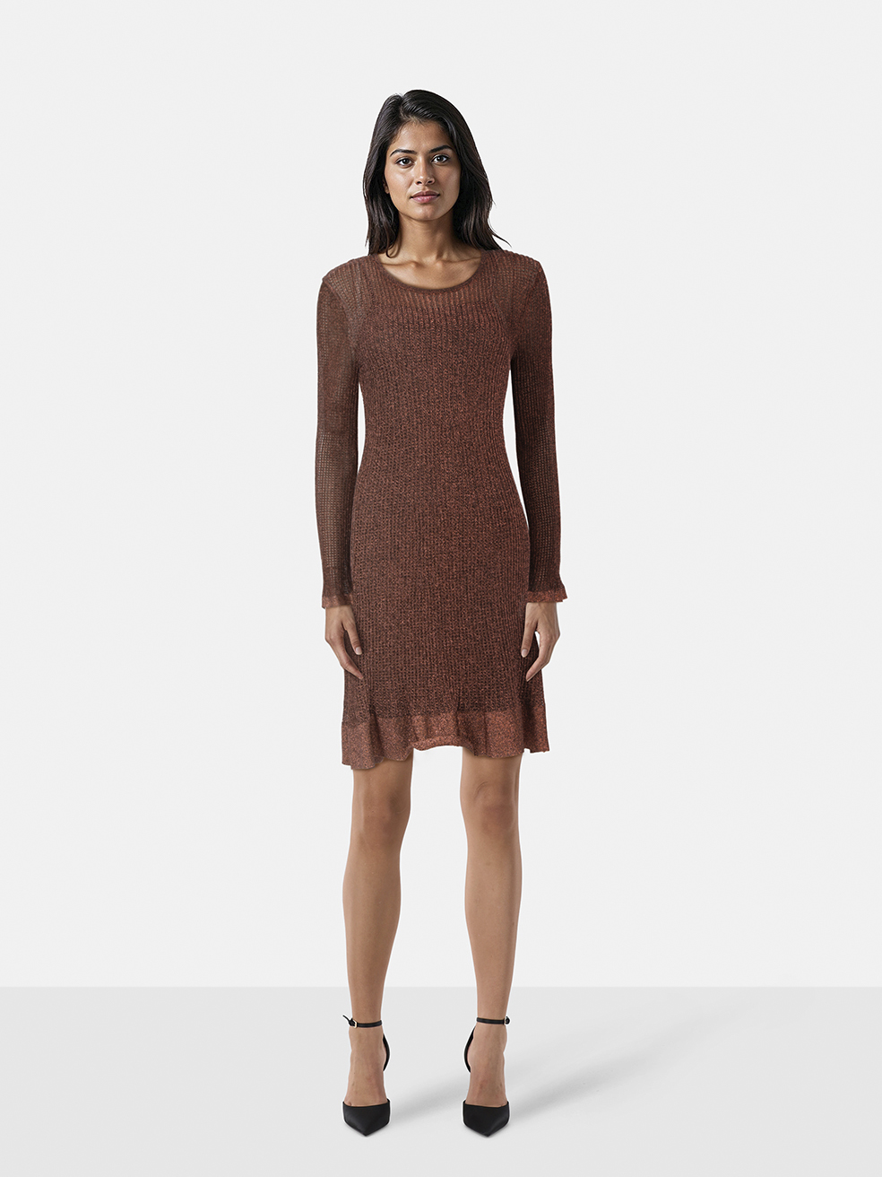 Missoni Brown Metallic Knit Long Sleeve Dress