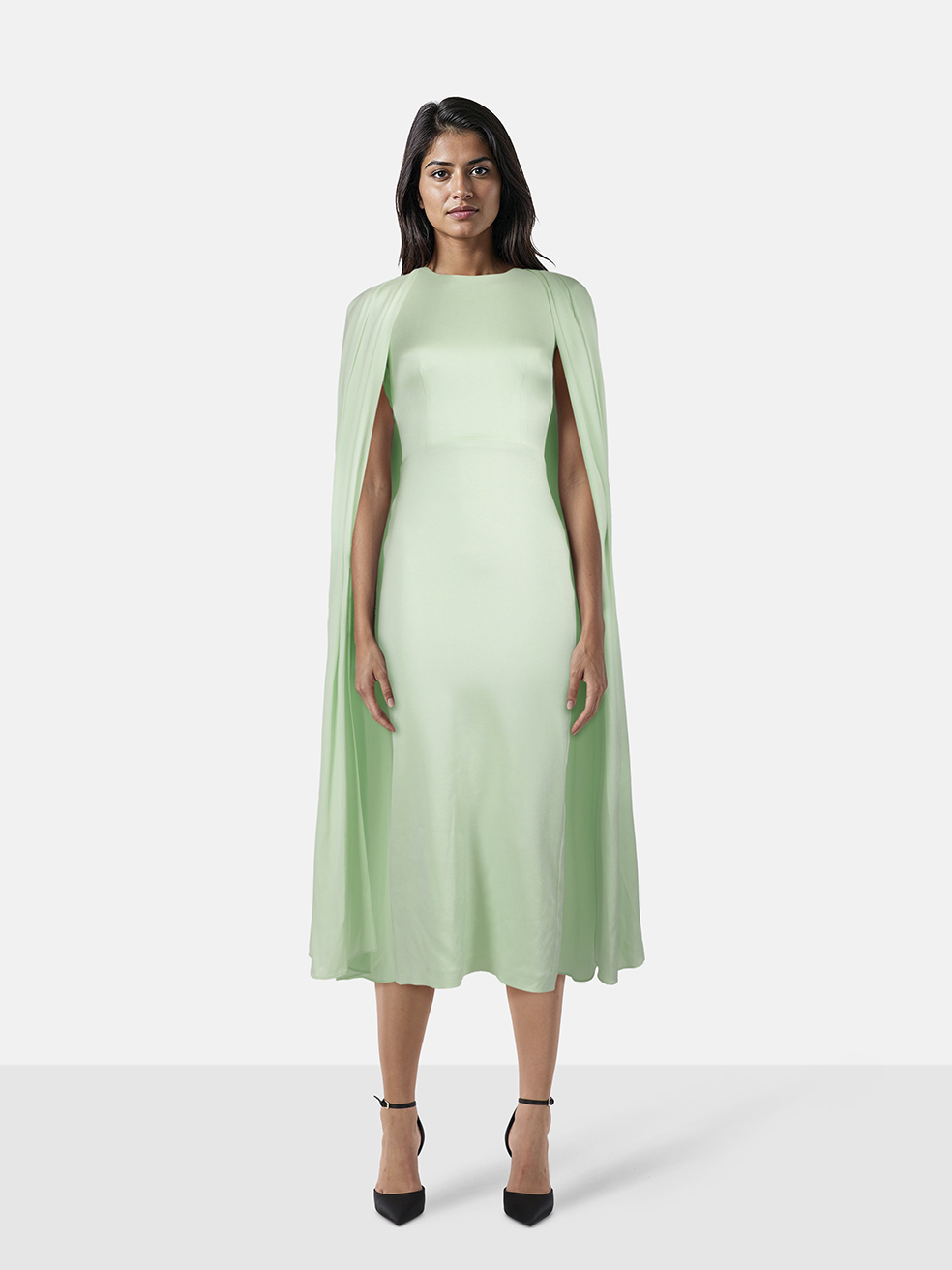 Alex Perry Mint Satin Crepe Crew Cape Dress
