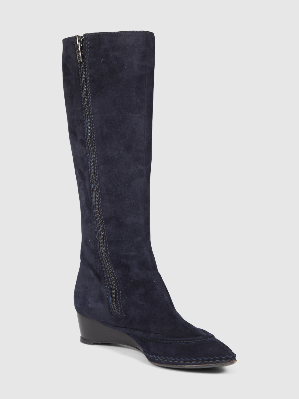Fratelli Rossetti Navy Suede Low Wedge Boots