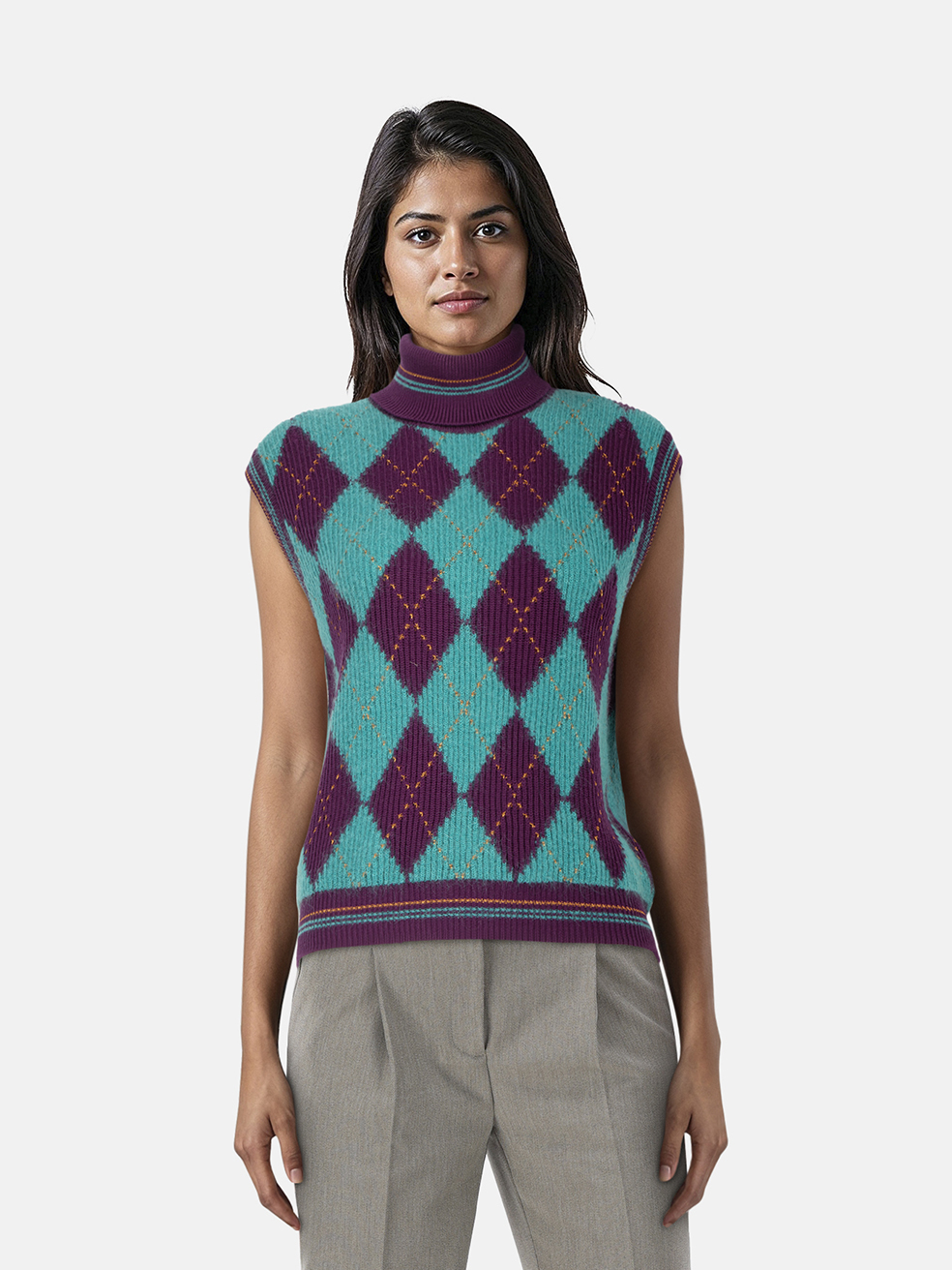 Versace Teal & Purple Wool Argyle Knit Vest