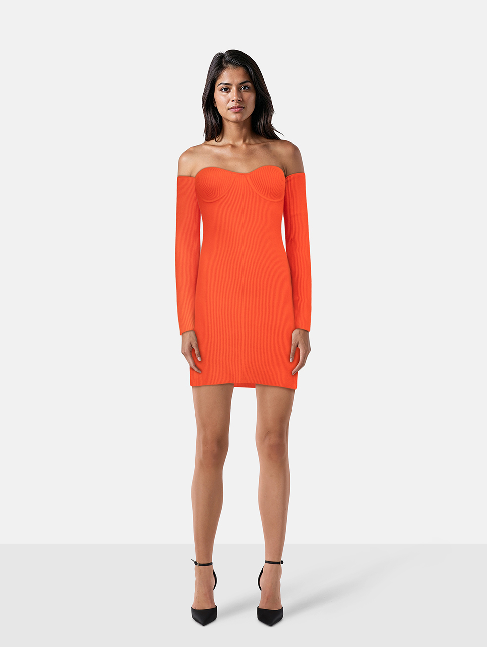 Helmut Lang Orange Contour Ribbed Mini Dress